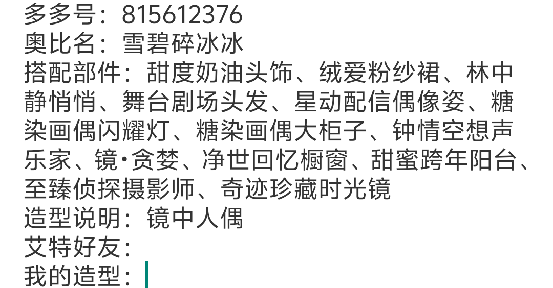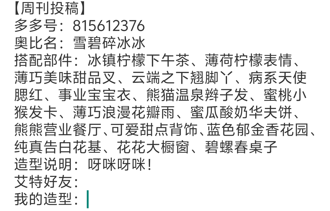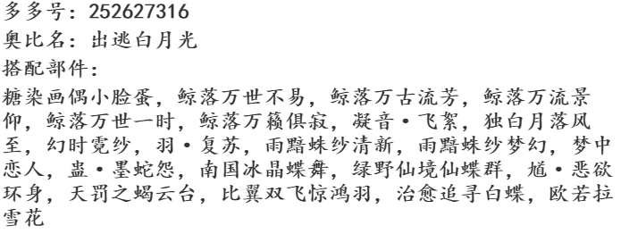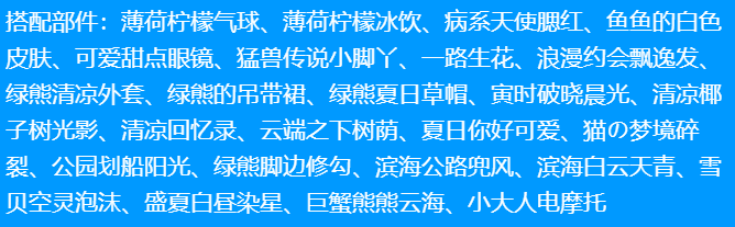 搭配部件:(部件名字和截图)部件需要文字版注明,不要只放图片哦!只放图片可能不会被