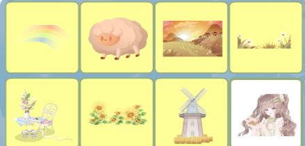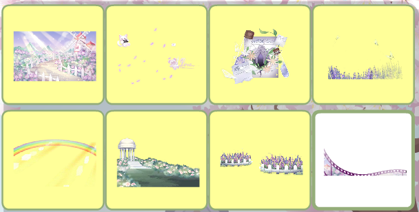 日落小画家彩虹、日落小画家小羊、日落小画家背景、日落小画家草丛、花房姑娘桌椅、