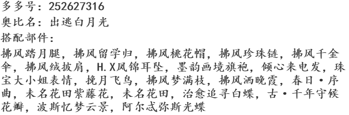搭配部件:(部件名字和截图)部件需要文字版注明,不要只放图片哦!只放图片可能不会被
