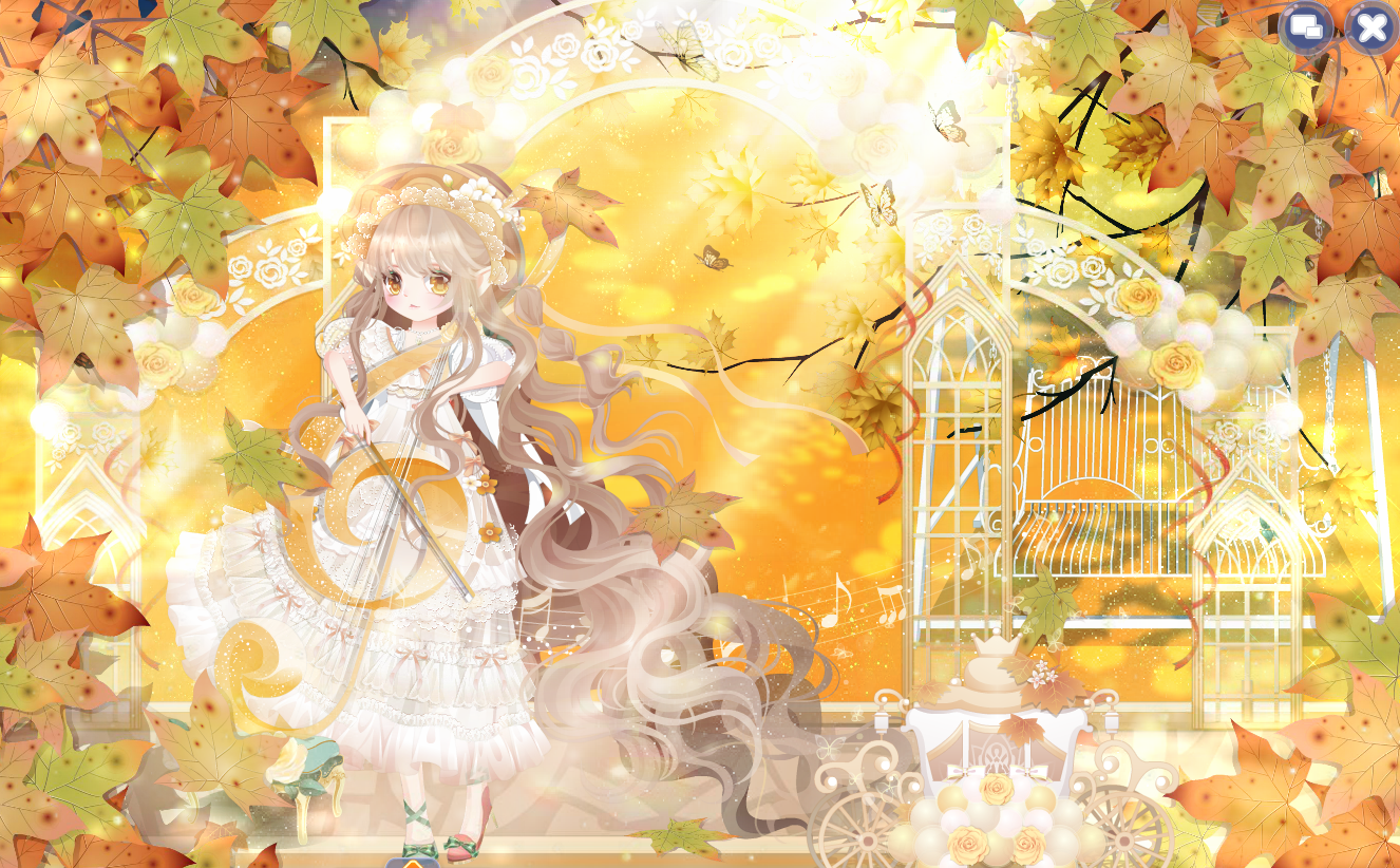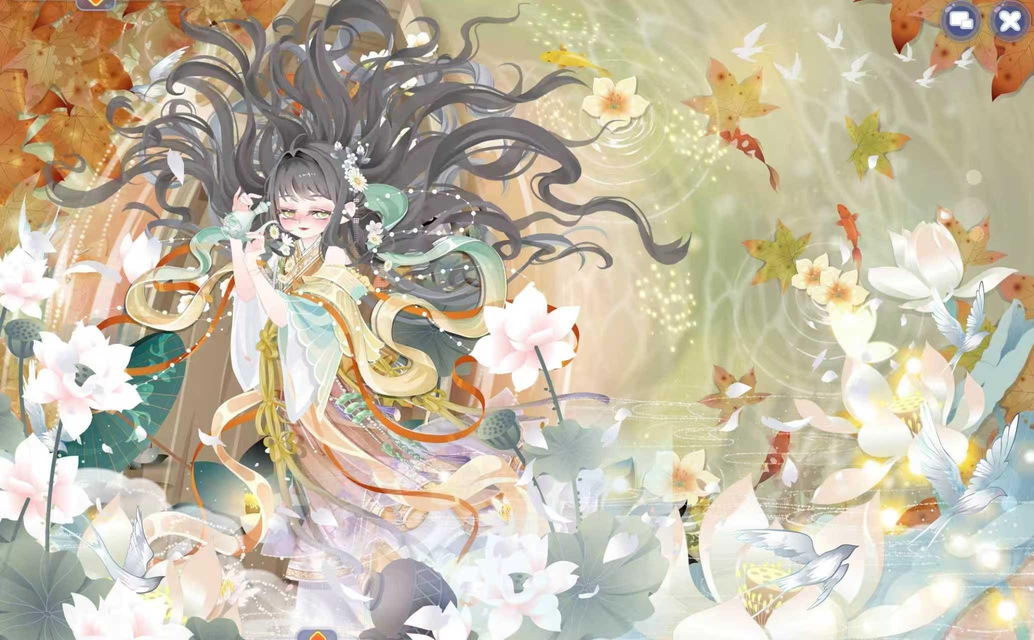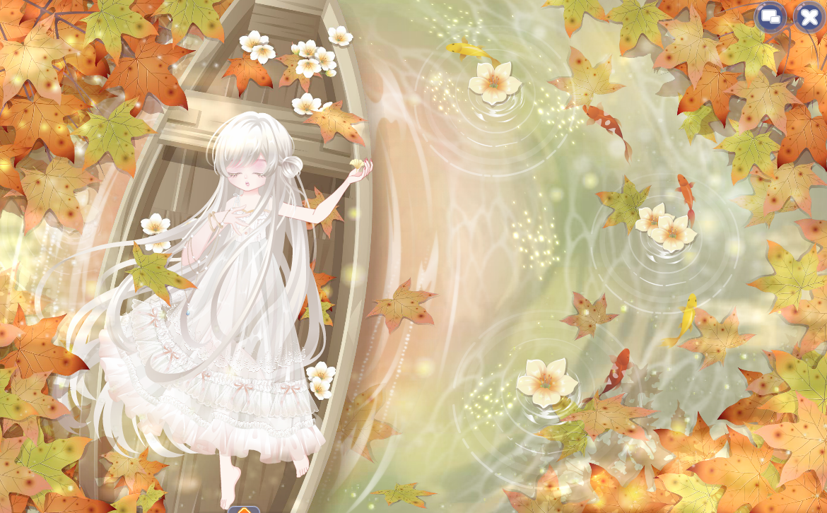 懵懂颜,醉花阴长裙,醉花阴外披,雪花飞舞,温柔妆容腮红,H.X清桂花帽子,摇船浮语枫叶,摇船浮语背景,枫歌秋笺银杏,挽月洒满星辰,挽月流云,墨韵画境卷轴,墨韵画境掌控,缘侧之宿小雨