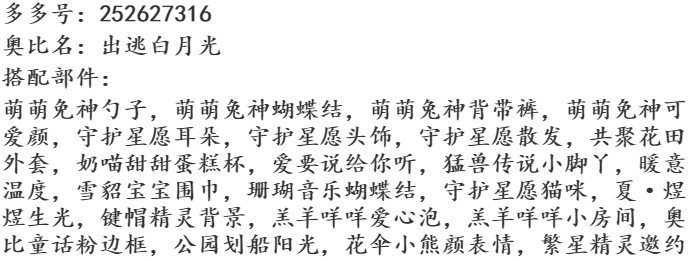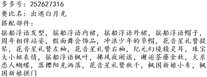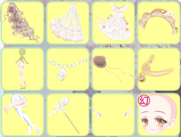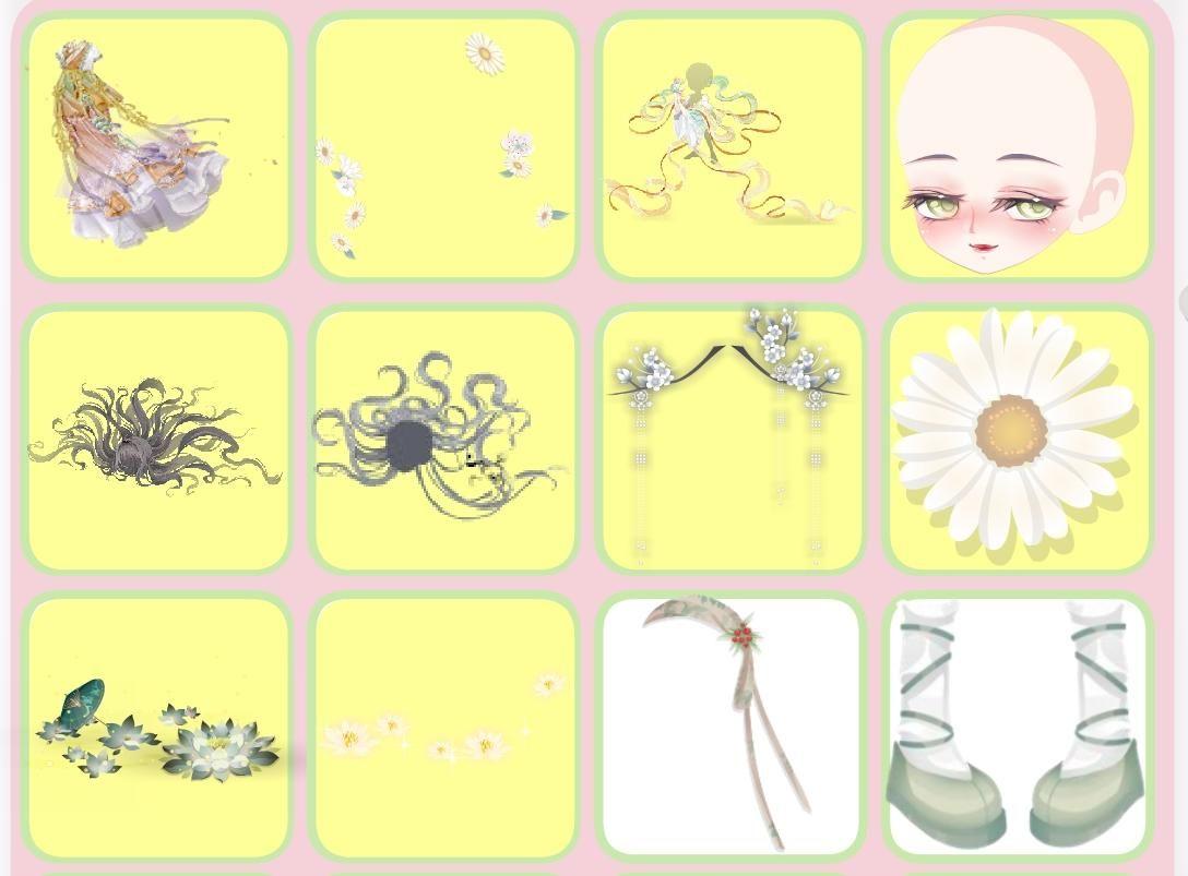 摇船浮语表情、钟情半芮蝴蝶结、晶落星梦跪星姿、油画少女花环、春风泡沫长发、假日丽春微笑唇、玉宫金丝雪纱、仲夏萤火虫灯、精灵呢喃头纱、初遇城珀光翼、枯叶书签、金色蕾丝小短裙、纯蕾丝头花、