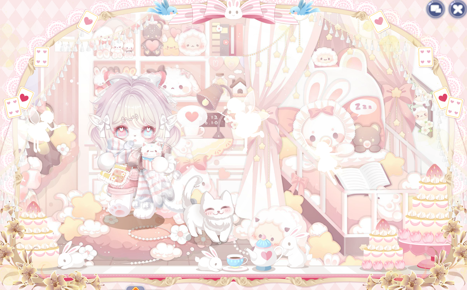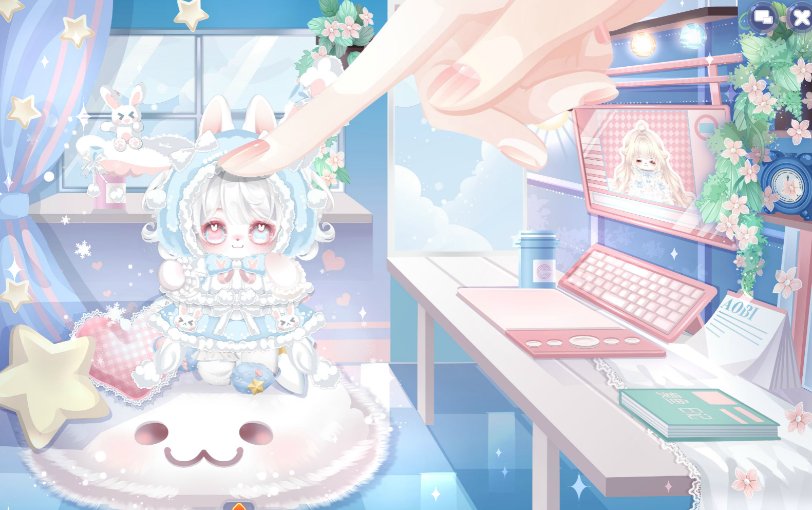 搭配部件:萌萌兔神可爱颜 待君归右手 共聚花田左袖 兔耳小短发 鱼鱼美梦站姿 萌萌咩咩兔兔衣 鱼鱼的办公房间 键帽精灵指间 云朵与宝石