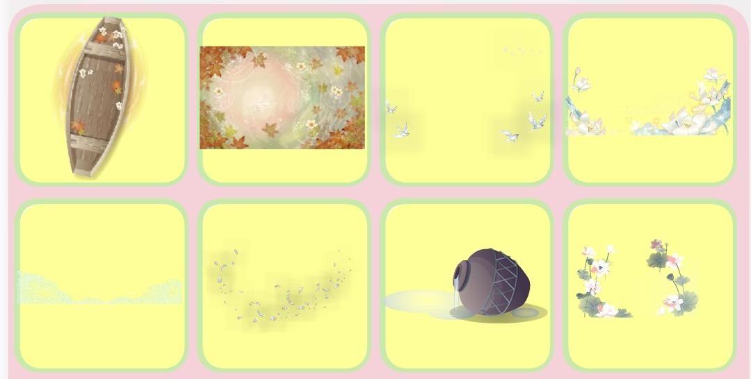 摇船浮语背景、夜•序章、夜•光明、鎏金痕迹鸢尾、风中有你夕阳、飞鸟少女百合花、柳宿宫廷妃子蝶、温馨之梦琥珀、白夜憧憬小精灵