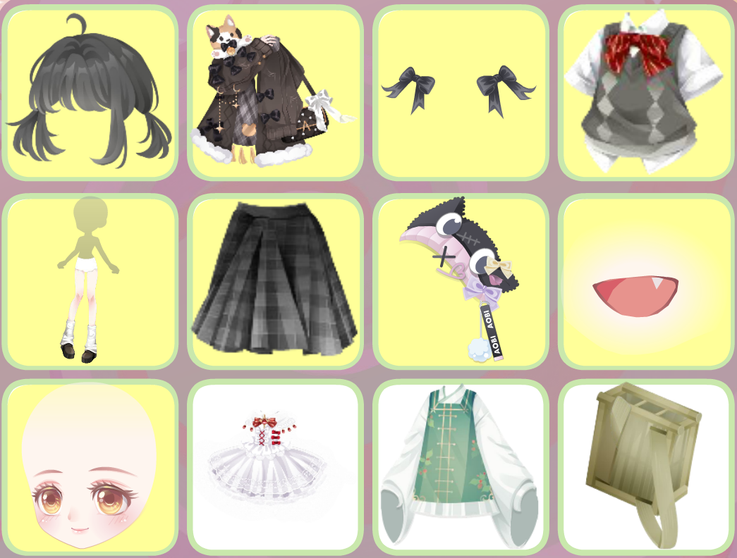 九九祯福鞋子、厨娘裙子、厨娘小笼包、厨娘头发、守护星愿微笑妆、元宵女孩功夫姿、墨香兮兮包包、元宵小汤圆包包、寅时破晓晨鸟、寅时破晓晨光、