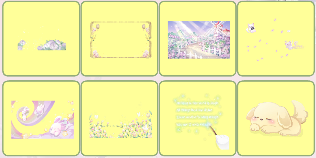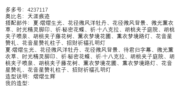 搭配部件:蜜糖小狗表情 泡泡嬉戏持镜 霓虹 亲爱的公主 不复醒 宝石珍珠耳环 优雅月光石皇冠 花鹦少女城堡 夏 熠熠生光 花径微风洋牡丹 信使 花瓣散落 桐花乐曲字句 桐花乐曲边框 玫瑰王子飞沙 傲梅风骨月落