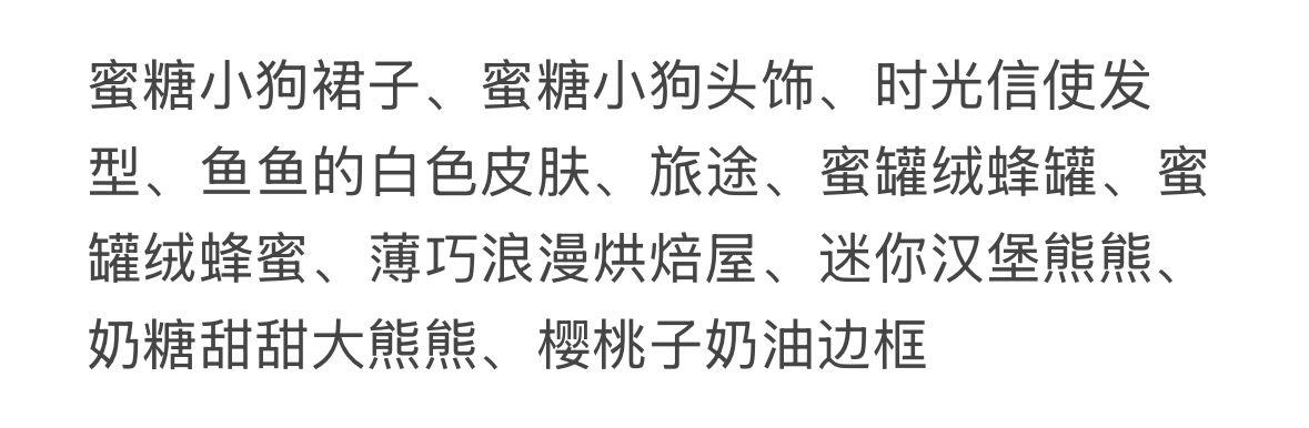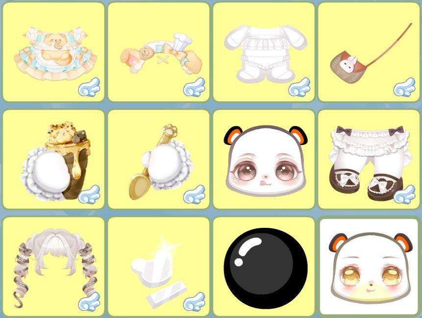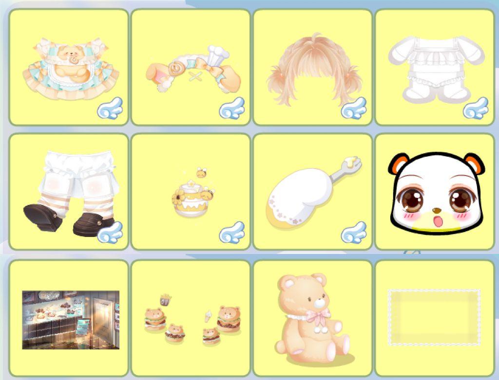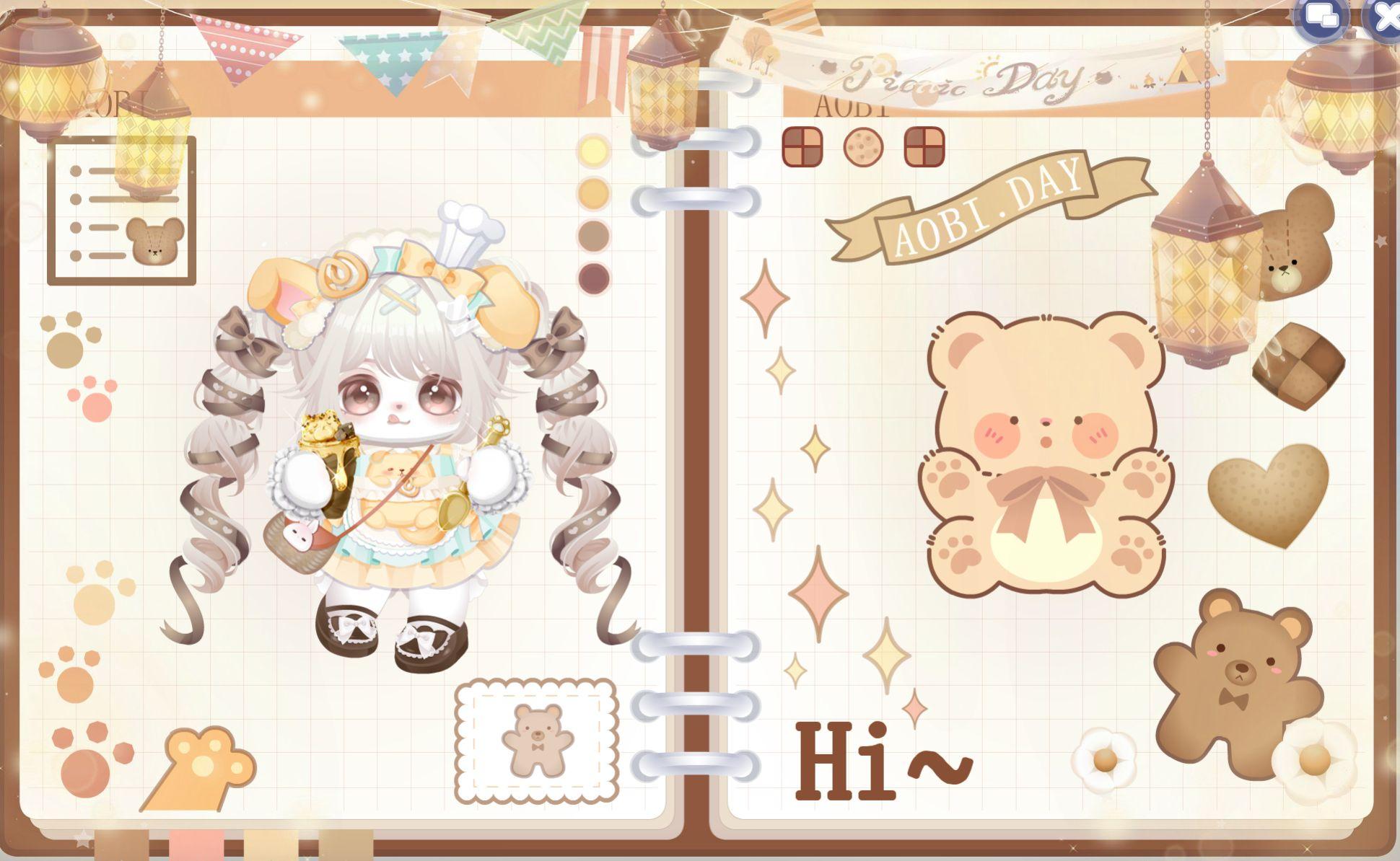 搭配部件:蜜糖小狗裙子,蜜糖小狗头饰,鱼鱼的白色皮肤,快乐出行小包包,甜甜蜂蜜右手,甜甜蜂蜜左手,小熊·馋嘴妆,热可可奶油鞋子,热可可奶油发型,儿时熊熊小发夹,秋日深深云景,秋日灯挂小旗,小熊饼干手账