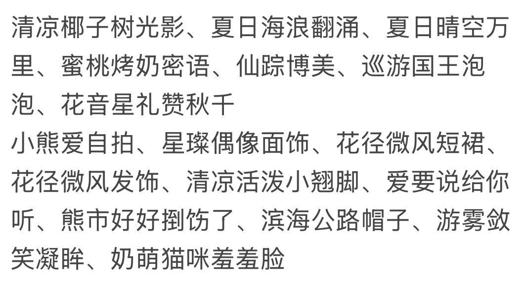 星璨偶像面饰,花径微风表情,花径微风短裙,花径微风发饰,鱼鱼的白色皮肤,汐盈之花站姿,爱要说给你听,七彩织云造物,蔷薇心事长发,晨曦星离雨散,守得雪珠半飘摇,花径微风洋牡丹,花径微风背景,秋日蝴蝶飞舞,绿熊魔法诗句