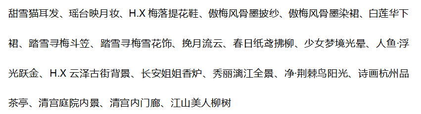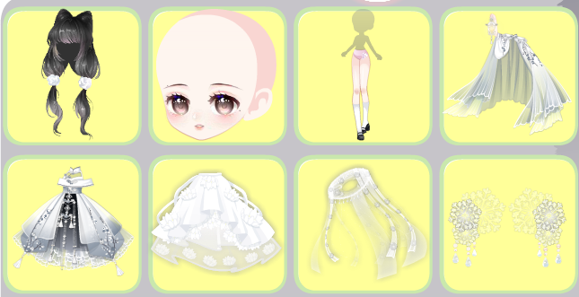 搭配部件:甜雪猫耳发,月霄花雨项圈,月霄花雨花钿,鸾鸟·未央,万凰皇后朝珠,万凰皇后朝冠,华夏新娘金簪,鸾凤和鸣金簪,珠宝大小姐表情,挽风洒满星辰,H.X繁花市井,乌鹭·纱帘幽梦,耀舞盛世花灯,霓裳金莲宫灯,霓裳金莲祥云,神佑·桃结缘来,貂蝉·映水绛唇花,江山美人长廊