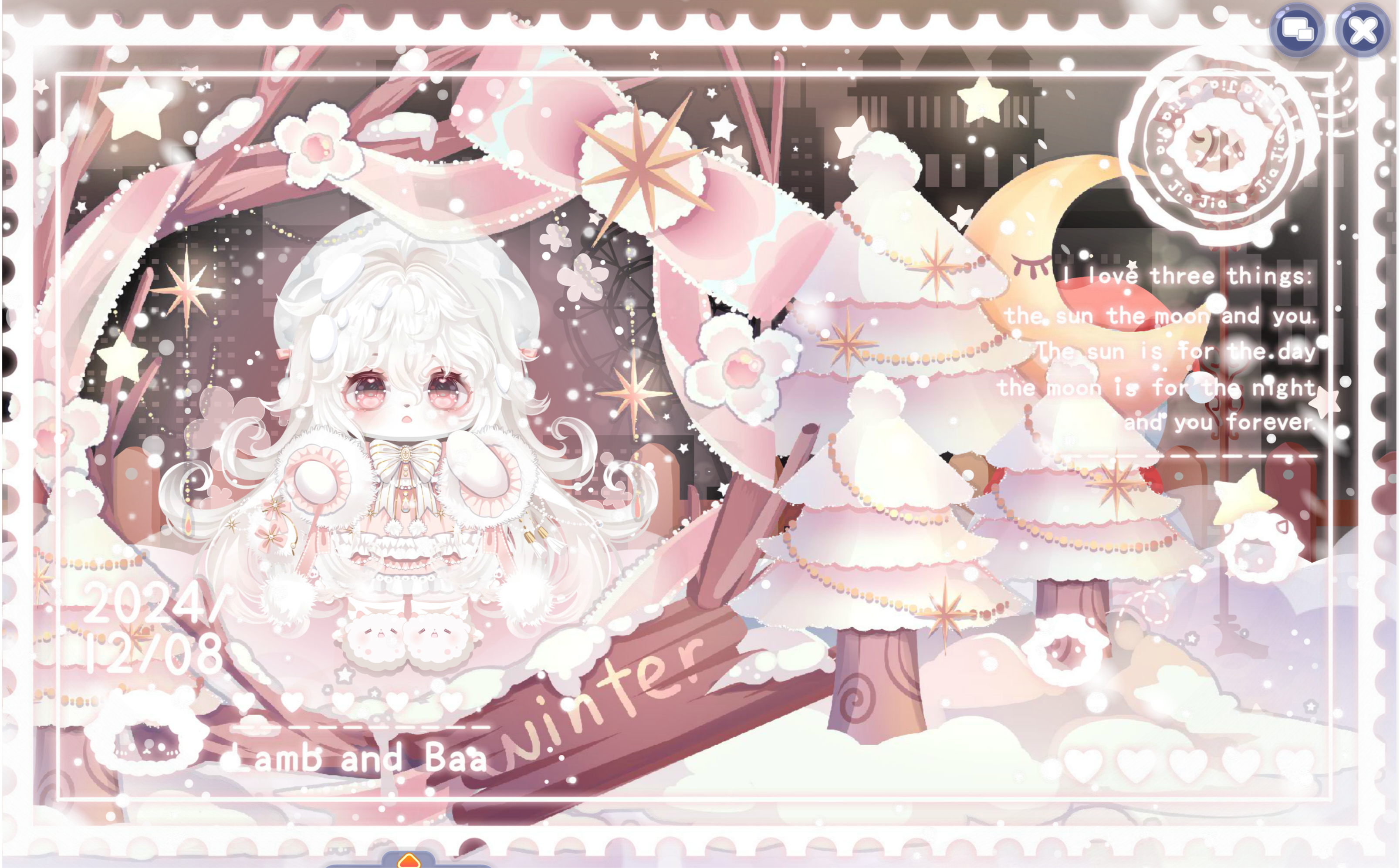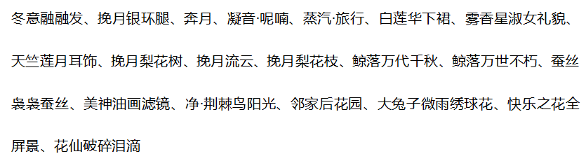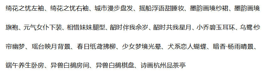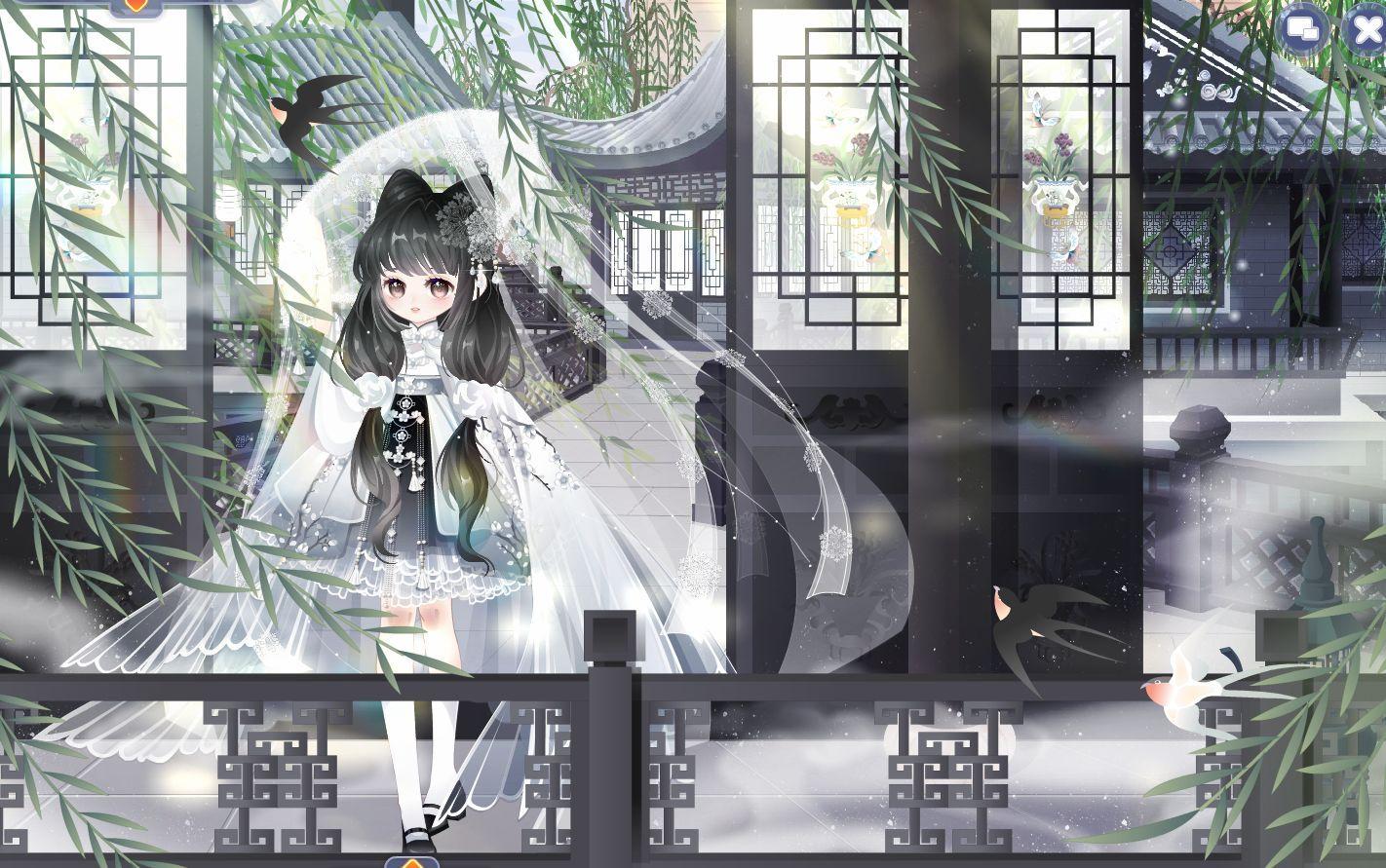 搭配部件:甜雪猫耳发,静待春光妆,少女剑心三条簪,洛阳裙,黑耀银星鞋子,云间绘卷画轴,墨韵画境花瓣,墨韵画境掌控,乌鹭·纱帘幽梦,噩梦终端脑回路