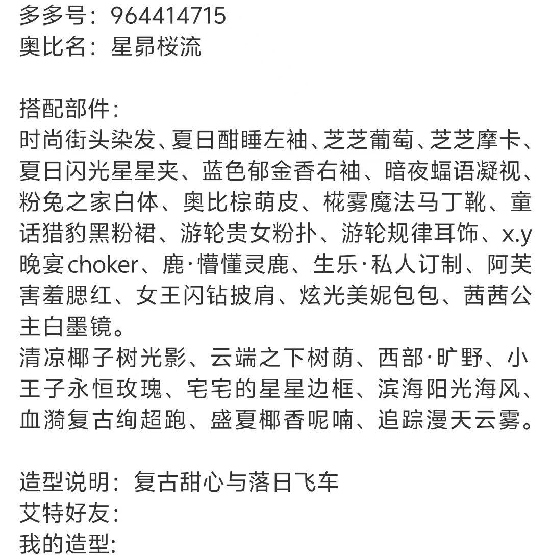 搭配部件:绮花之忧站姿 周年相伴头饰 钟情半芮蝴蝶结 梦纱花韵卷发 花.埋藏心意 春日邮馨妆 阿芙洛狄忒蝶群 荧蝶心动讯号 花漾温馨蝴蝶 未名花田紫藤花 未名花田 欧式清新花房 琉璃庭院花房