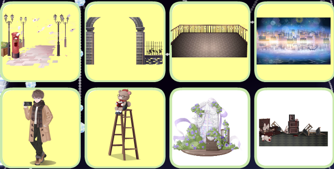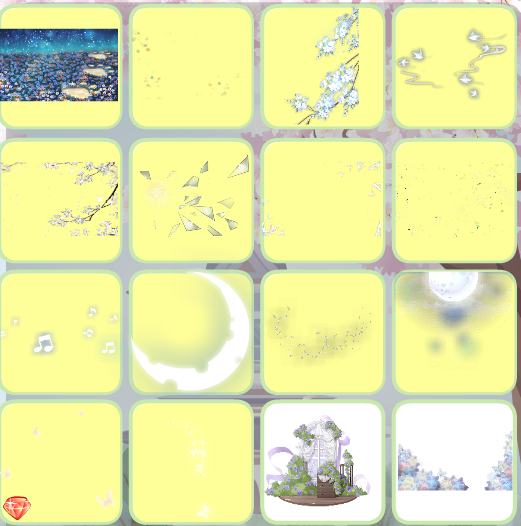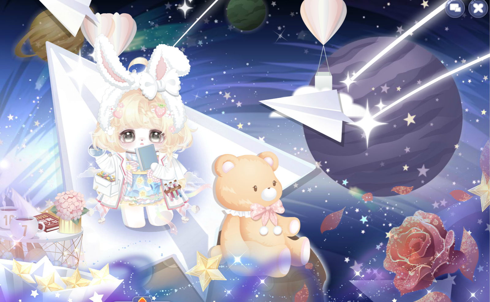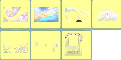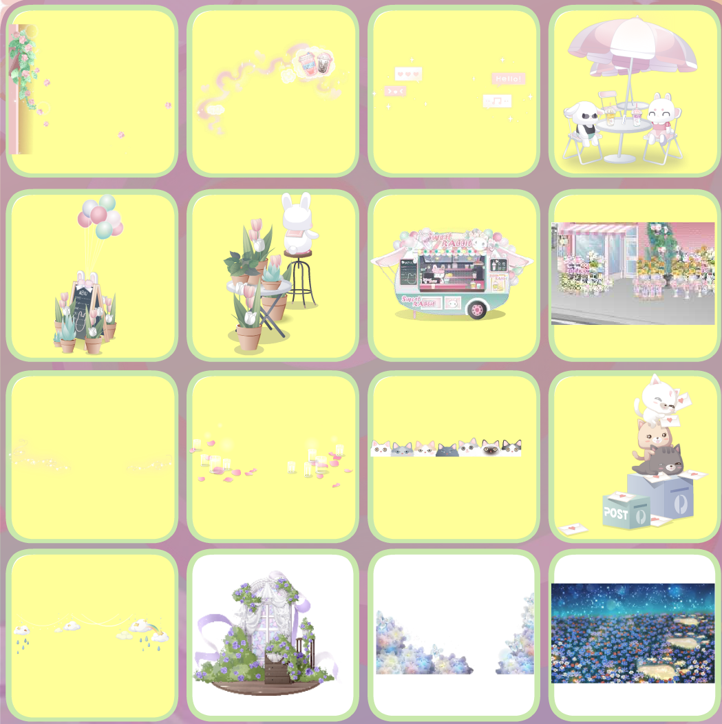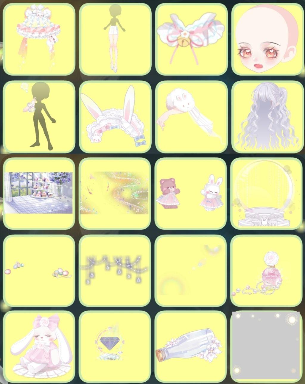 云笺纸飞机彩虹、清凉晴空沙滩景、清凉回忆录、童话故事童话书、绿熊郁金花丛、软甜梦境兔兔坠、花音星礼赞秋千
