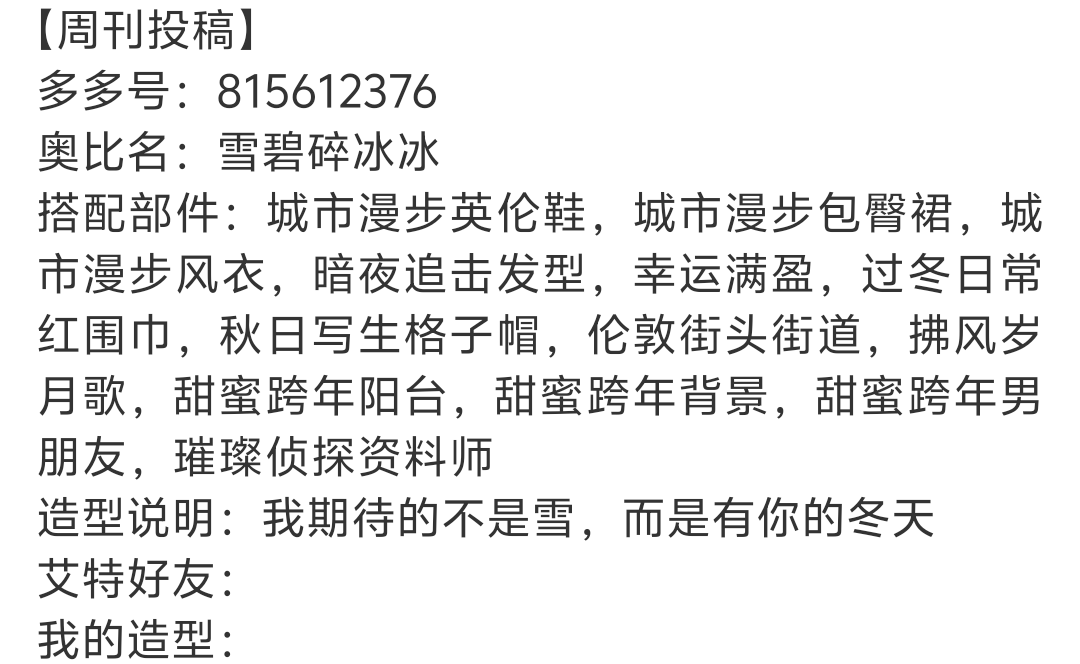 5.搭配需带有当周上新服饰至少一件。 (敲重点)