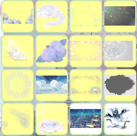 猫猫礼遇绣球,猫猫礼遇大白猫,绿野仙境仙蝶群,人鱼·浮光跃金,治愈追寻白蝶,大兔子雨后绣球,少女心登场边框,蒲公英幻想云,彩色蒲公英背饰,缘之录苍穹原野,瞬·时光炫彩贝壳,绣球光景,雪之歌框架,幻·斑斓洋牡丹