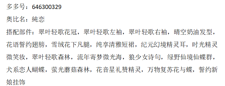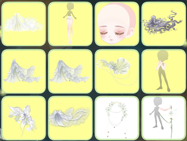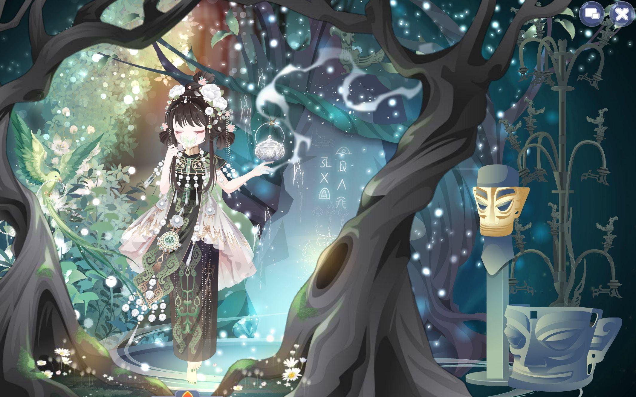 搭配部件:翠叶轻歌蝴蝶,云绾玉簪髻,海浴浅糖右袖,寻觅文明下装,寻觅文明长裙,寻觅文明短裙,朝颜听雨右袖,月华彩衣头饰,蛊·通灵神,白月光璀璨步摇,白女巫闭眼妆,翠叶轻歌森林,鱼·青鸟,夜荷梦谣背景,寻觅文明青铜,寻觅文明神树,迷雾禁地之树