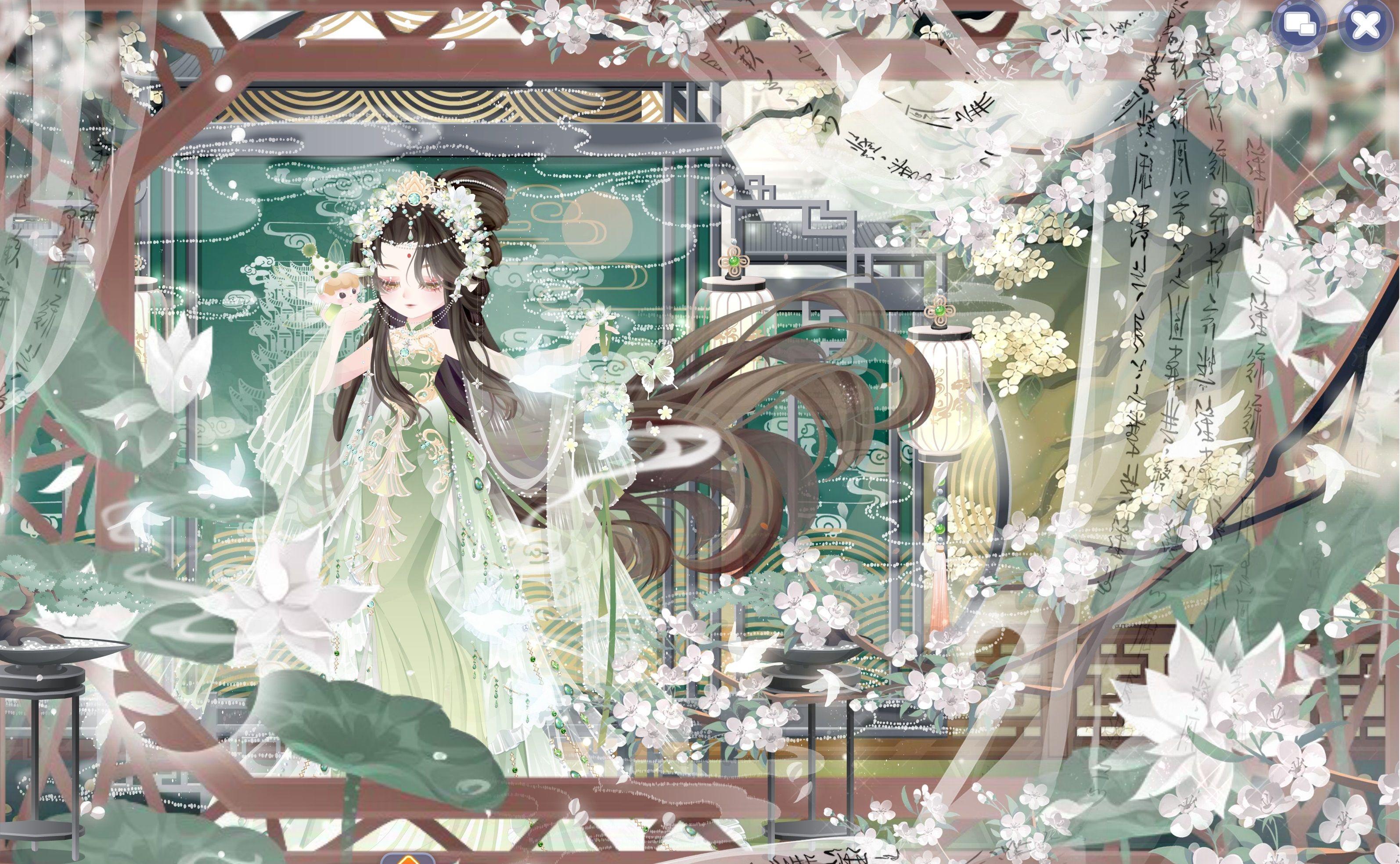 造型说明:翠影摇庭户,花香染罗衣,一帘清梦入江南
