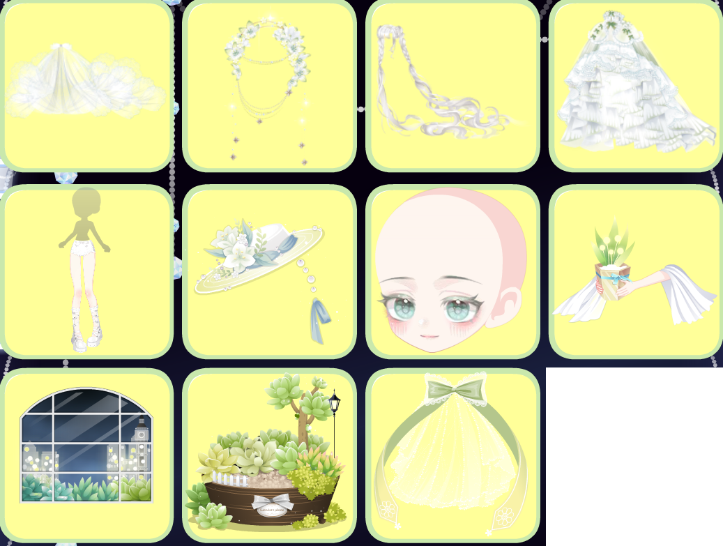 翠叶轻歌花冠、翠叶轻歌左袖、翠叶轻歌右袖、月霄花雨发型、寻觅文明垂眸、翡翠青丝外裙、地母娘娘仙裙、地母娘娘额饰、门童小仙朱砂痣、