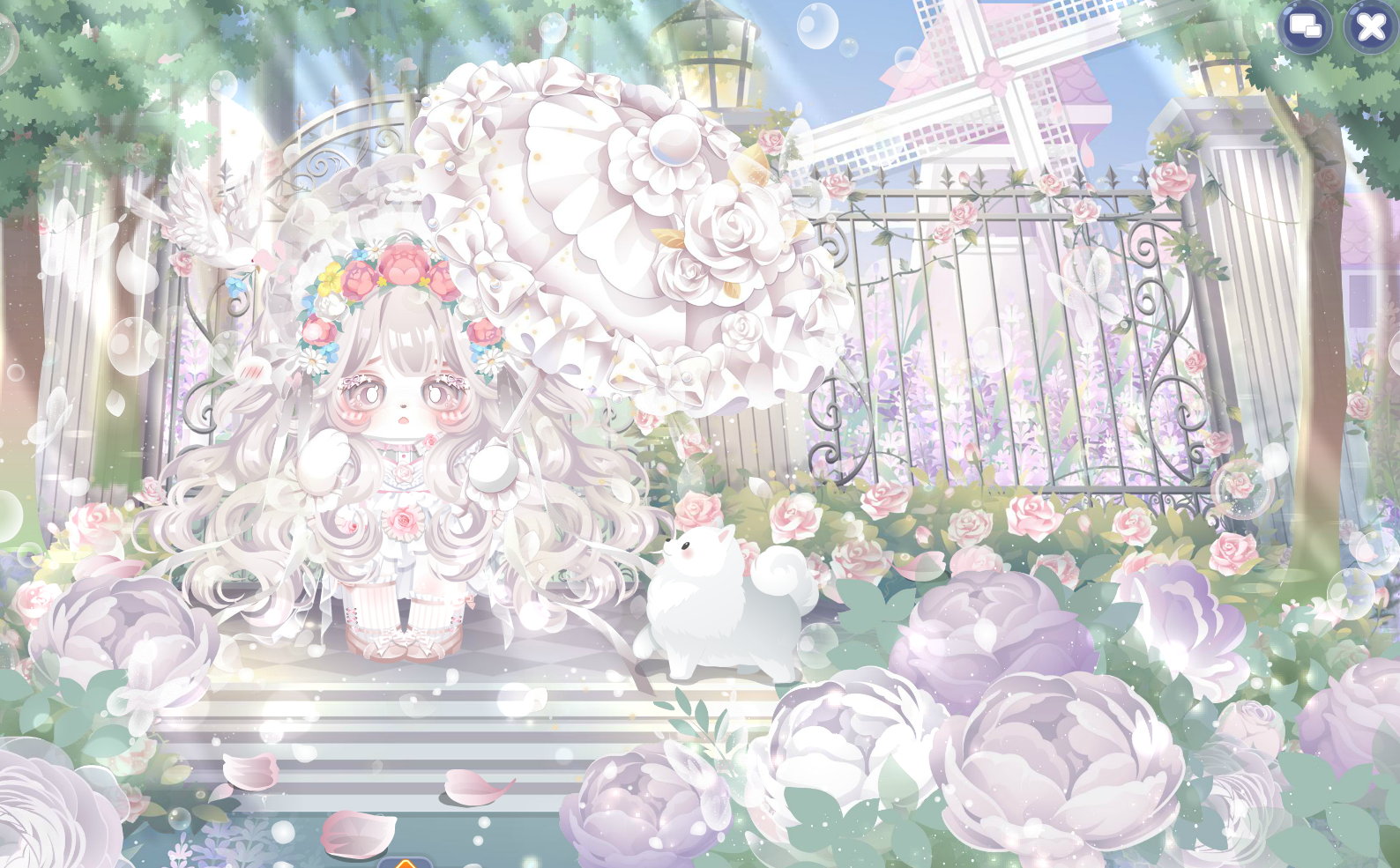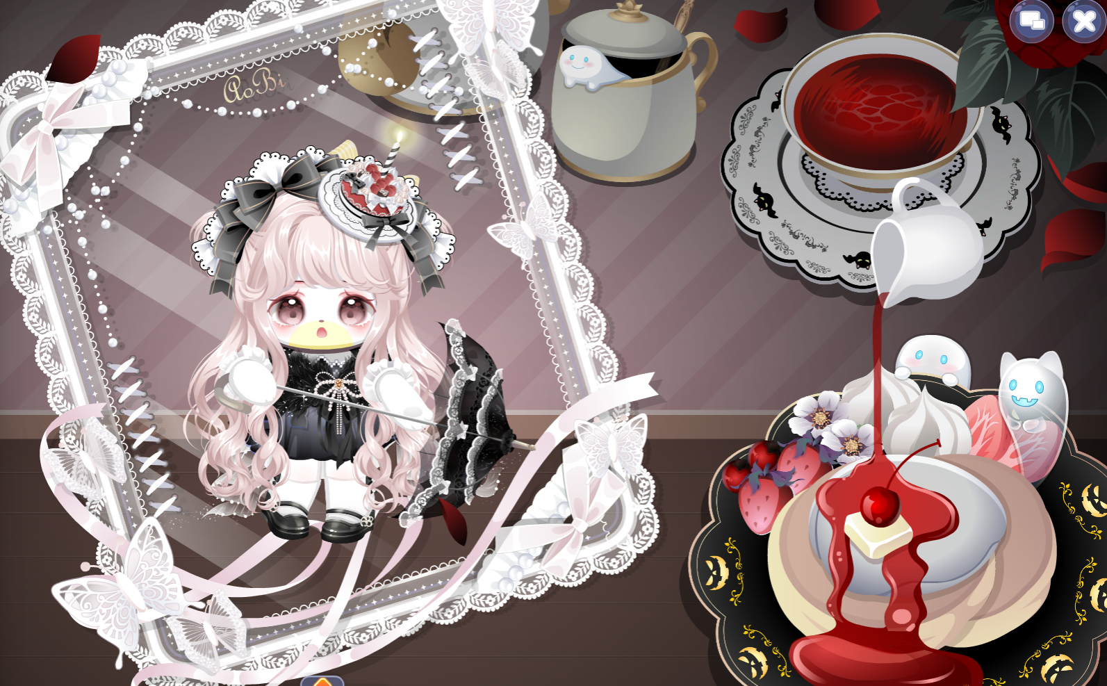搭配部件:懵懂糖果长发、霜寒渡雪站姿、珍语假日披肩、白月光刺客裙子、狂欢晚宴头饰、守护星愿裙纱、春日出行公主伞、古玩品鉴妆、爱要说给你听、阿芙害羞腮红、霜糖丸子背景、霜糖丸子相框、狂欢晚宴甜点、狂欢晚宴红茶、狂欢晚宴玫瑰花