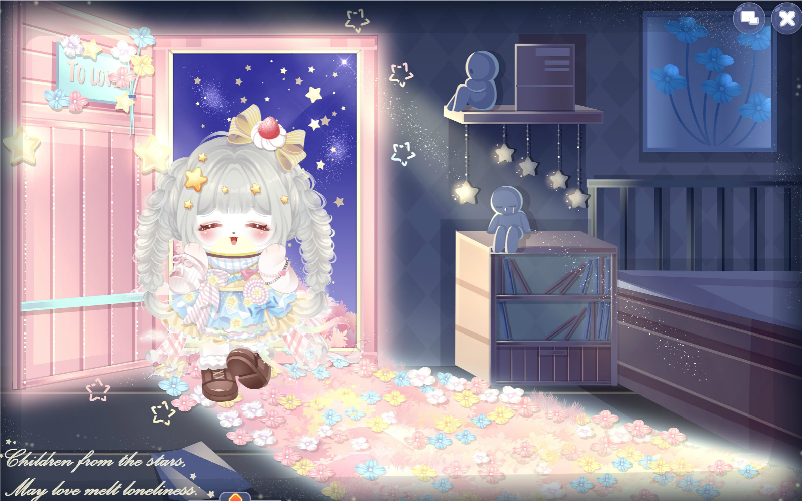搭配部件:霜糖丸子发夹、霜糖丸子头饰、姜香雪夜站姿、糖果梦幻裙、秋日鱼骨两辨发、粉迎嬉乐左袖、粉迎嬉乐右袖、粉迎嬉乐表情、守护星愿裙纱、守护星愿任意门、守护星愿滤镜