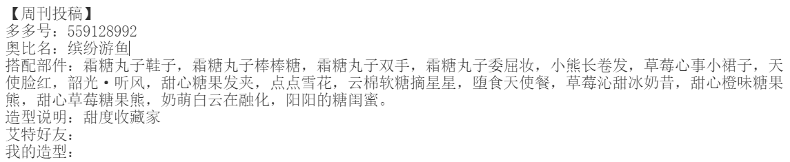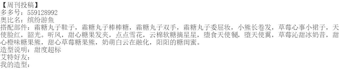 2.本次搭配需要围绕 “糖果丸子装扮赛” 这个主题,无论是魔力服饰还是熊装都是可以的。