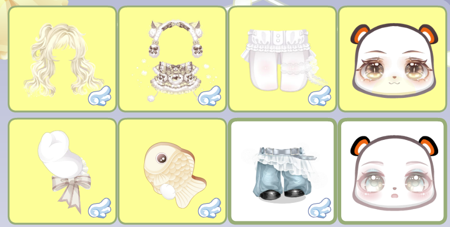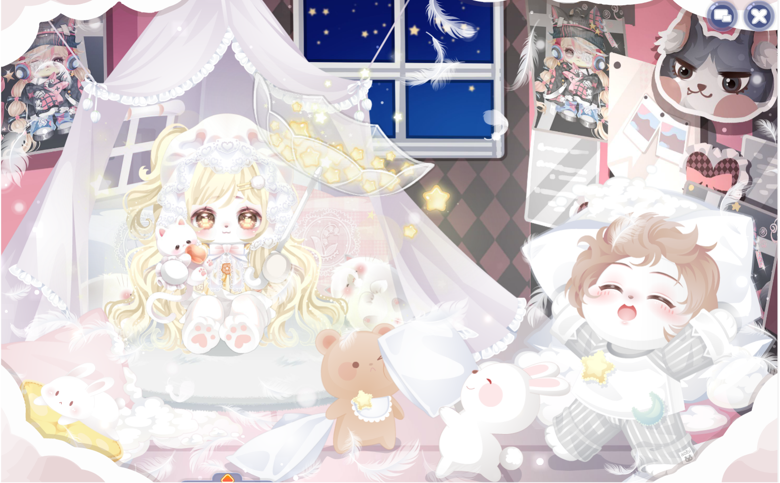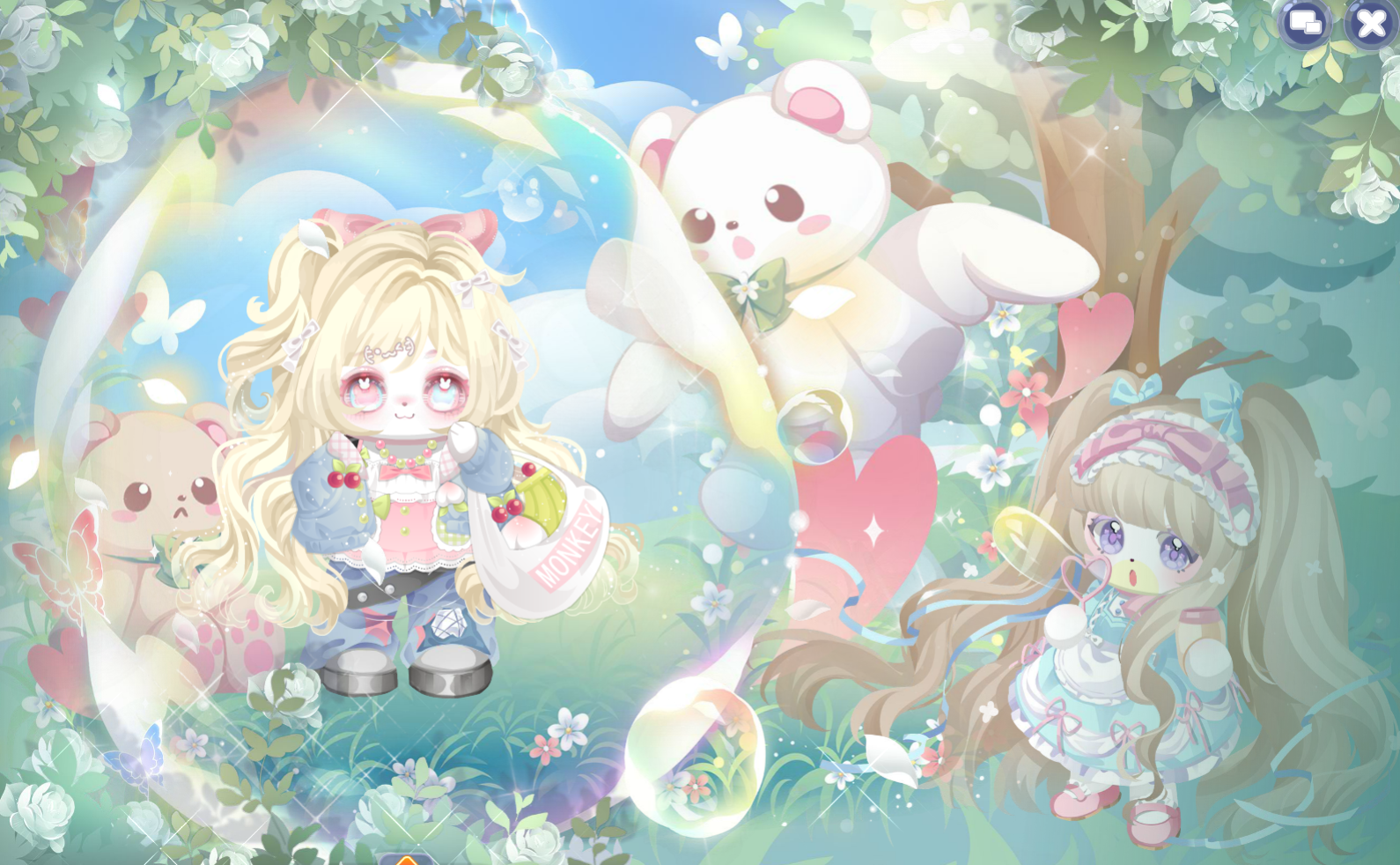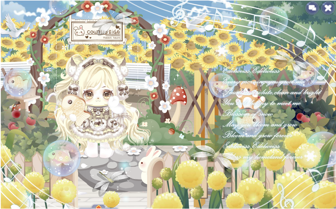 搭配部件:纯白战争发型、纯白战争鸭子、练习书法外套、云朵旋律发饰、气呼呼额饰、守护星愿站姿、守护星愿头饰、花径微风花束、鱼鱼的白皮肤、鱼鱼的蝴蝶内裙、爱要说给你听、风·妙瞬,霜糖丸子相框、雪国列车童谣、田野小画家背景
