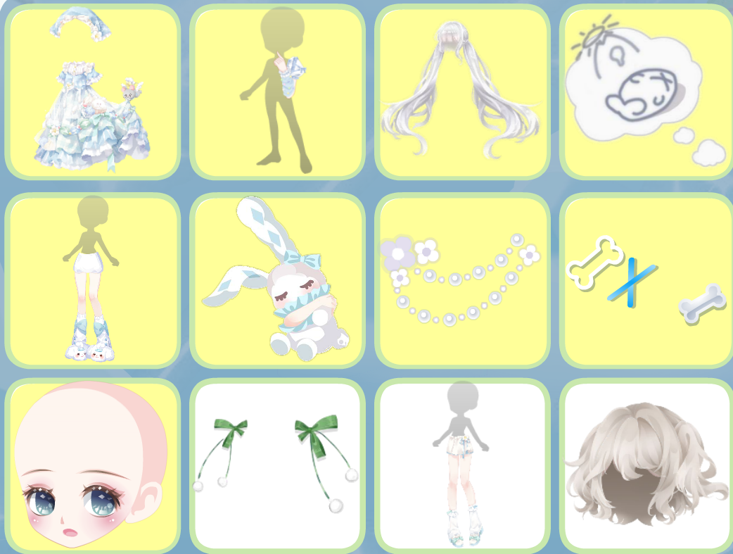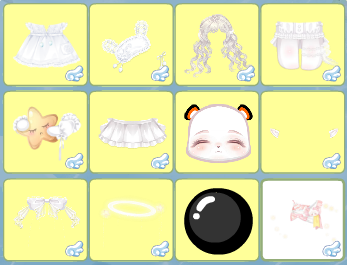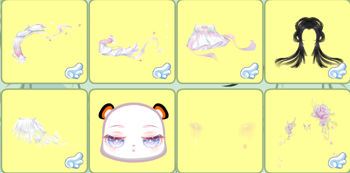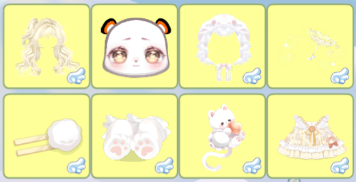 纯白战争睡袍、纯白战争眼罩、白月光层次卷、彼岸双华若绸、怯怯心礼袖子、绒意双辫短裙、守护星愿微笑妆、守护星愿耳朵、守护星愿头饰、守护星愿光环、纯白战争小伙伴、纯白战争痕迹、纯白战争衣柜、纯白战争背景、拾光·天籁之音、小兔宝宝看娃娃、甜蜜心意气球灯、甜蜜心意星串灯、甜蜜心意透纱帘