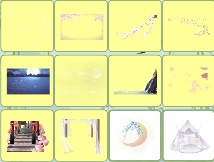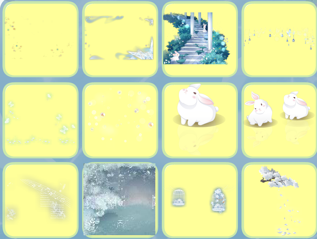 甜梦恋语背景、绿熊粉色fafa、青云白兔背饰、鹊桥仙前景、萌萌桃夭桃花枝、龙宫幽静烟袅绕、梅间落雪寂无声、古·娇宠河灯宠