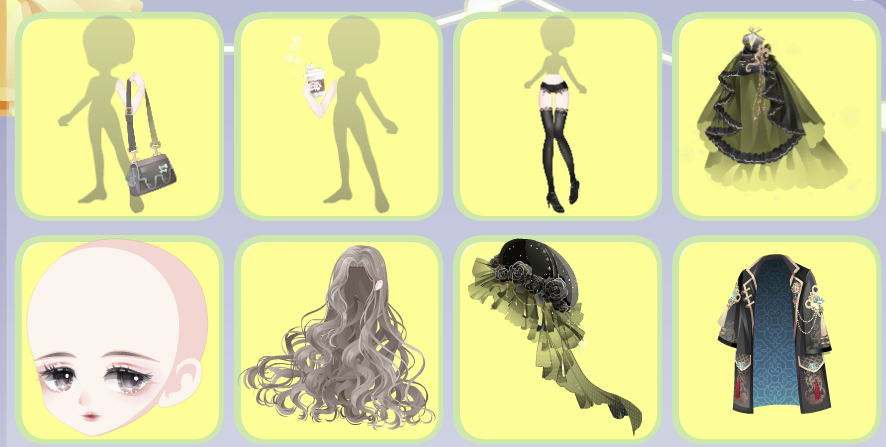 搭配部件:白昼焙香左袖、白昼焙香右袖、夜·远行、卷王效率连衣裙、曲院姐姐温婉颜、年华未央长发、夫人·黑金礼帽、H.X凤栖外套
