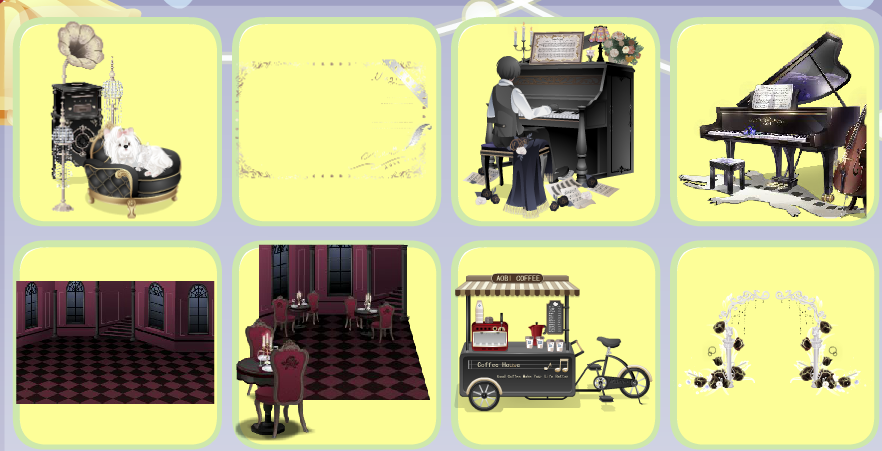 絮语萦年留声机、夜·序章、浮世琉璃音弹琴、少女琴声悠扬、不存轩咖啡厅景、不存轩咖啡厅、醇香浓郁咖啡车、夜幕真实之境