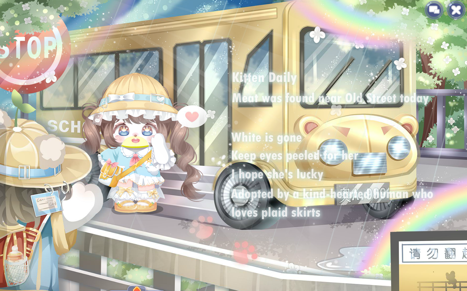 搭配部件:小猫、布丁喵喵裙、彼岸霜华若绸、金蕊琼芳表情、浪漫约会呼喊手、馋嘴橘猫大鱼干