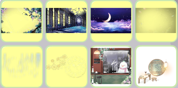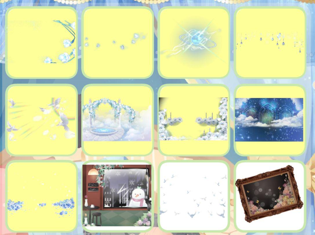 悬光花庭飞鸟、小雪晚夜梦鱼、拾级而上、人鱼·浮光跃金、龙城水龙浪花、奇遇时空城堡、雀墟祈梦新生景、白与风云层