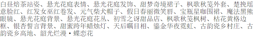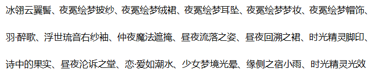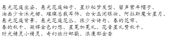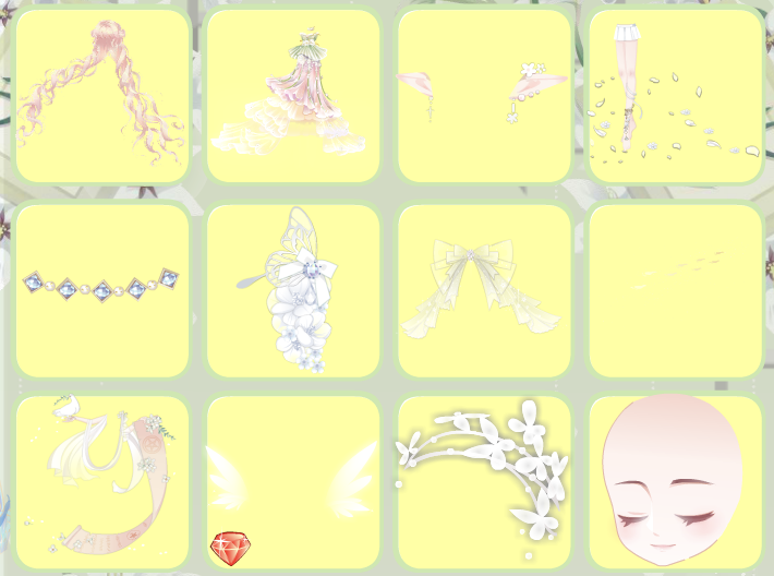 悬光花庭发型、陪伴新生裙子、仙女心受聆听耳、感恩女神站姿、天衡之秤项链、蜕变星蝴蝶花饰、耀·偶像花拖尾、时光精灵脚印、特洛伊恋歌小鸟、塔罗审判翅膀、梦境嫁纱头饰、白女巫闭眼妆、悬光花庭背景、夜·序章、诗中的幻影、春的边框、春的秋千、雾香星香水河、迷雾禁地之光、古·千年守候花瓣、少女心事花墙、花河虹彩、云暖花谱奏曲诗、遗失梦境蝴蝶