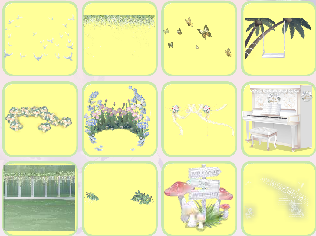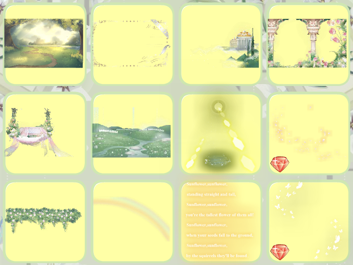 春景熙然花园、花漾幻庭光效、闲暇时光背景、闲暇时光彩虹、田野小画家草丛、花房姑娘桌椅、向阳幻想栅栏、漫园花兔栅栏