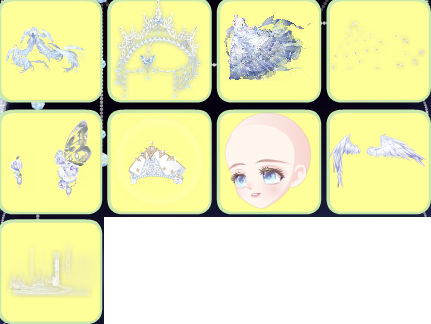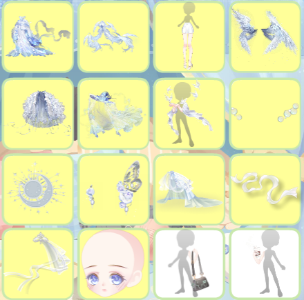 搭配部件:琼羽踏霜衣、冰翎云翼髻、鲸落万里同风、琉璃幻境、琉璃微光、凝音·碎梦、云境幻翼、蓝吟巨蟹面饰、北欧日神头饰、南国琉璃蝶恋、千金连线衬纱、芭蕾公主舞纱、芭蕾公主头纱、凯汐公主妆、阿芙洛狄忒神花、阿芙洛狄忒神柱、阿芙洛狄忒神像、雨黯蛛纱清新、雨黯蛛纱梦幻、云境春庭、云境浮海、云境照月、巨蟹座秘密星饰、契约牢笼白鸽、南国寒冰城堡、霓裳金莲祥云、时空旅人囚禁、下大雪啦边框、感恩女神背景、浪漫惊喜摩天轮、爱之名星空滤镜、雪雾绮诗大云景、白与风云层