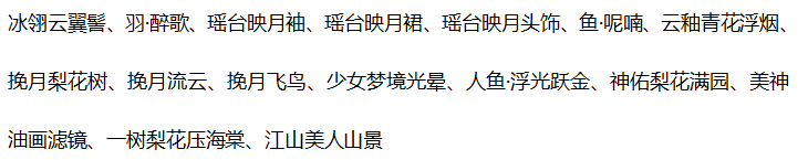 离火、阿芙洛狄忒腿姿、记忆•归、记忆•寻、灵悦燃心、涅槃蜕变套妆、原始级的龙尾、御·化为龙、