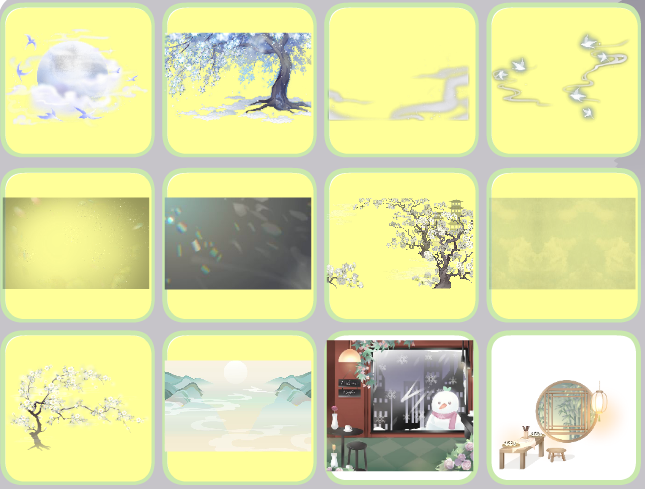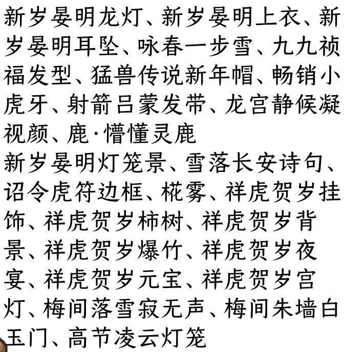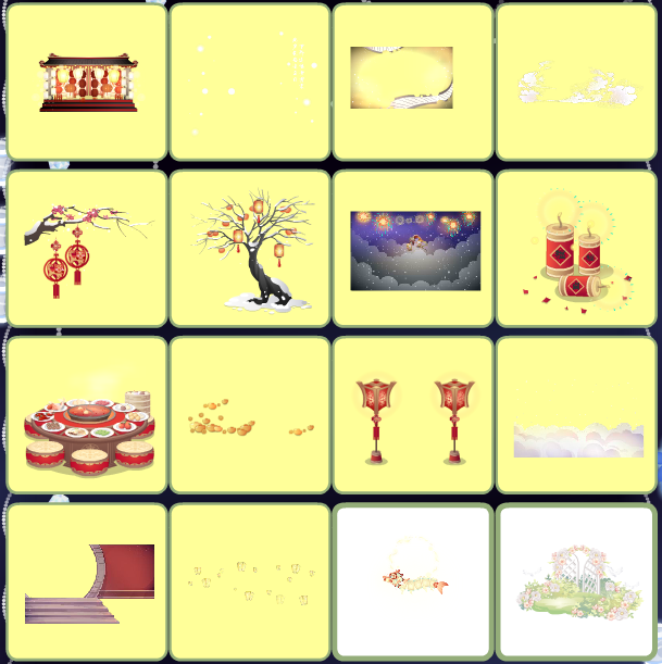寒兰遇雪背饰、猛兽传说好运来、诏令虎符背景、龙宫幽静烟袅绕、祥虎贺岁柿树、祥虎贺岁夜宴、神射之马梅树、神射之马骑宠、梅间细雪压枝头、梅间兔自皎月来、燃樱古灯