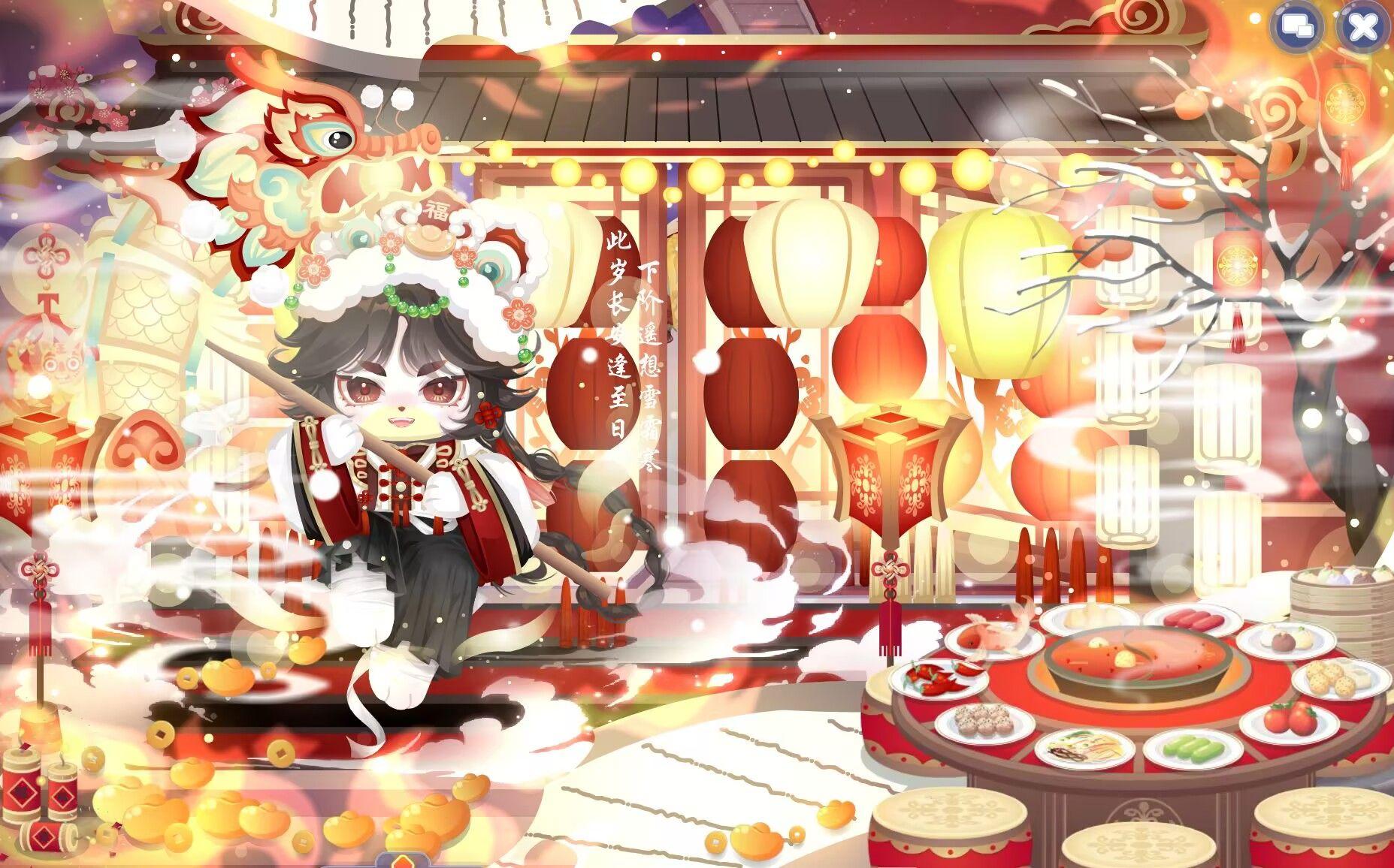 搭配部件:新岁宴明龙灯、九九祯福鞋子、诏令虎符自信、诏令虎符高马尾、虎虎生威头套、金牛拜年上衣、瑞福之树、日落小画家背景、祥虎贺岁院墙、祥虎贺岁夜宴、祥虎贺岁宫灯、白牛贺喜雾气