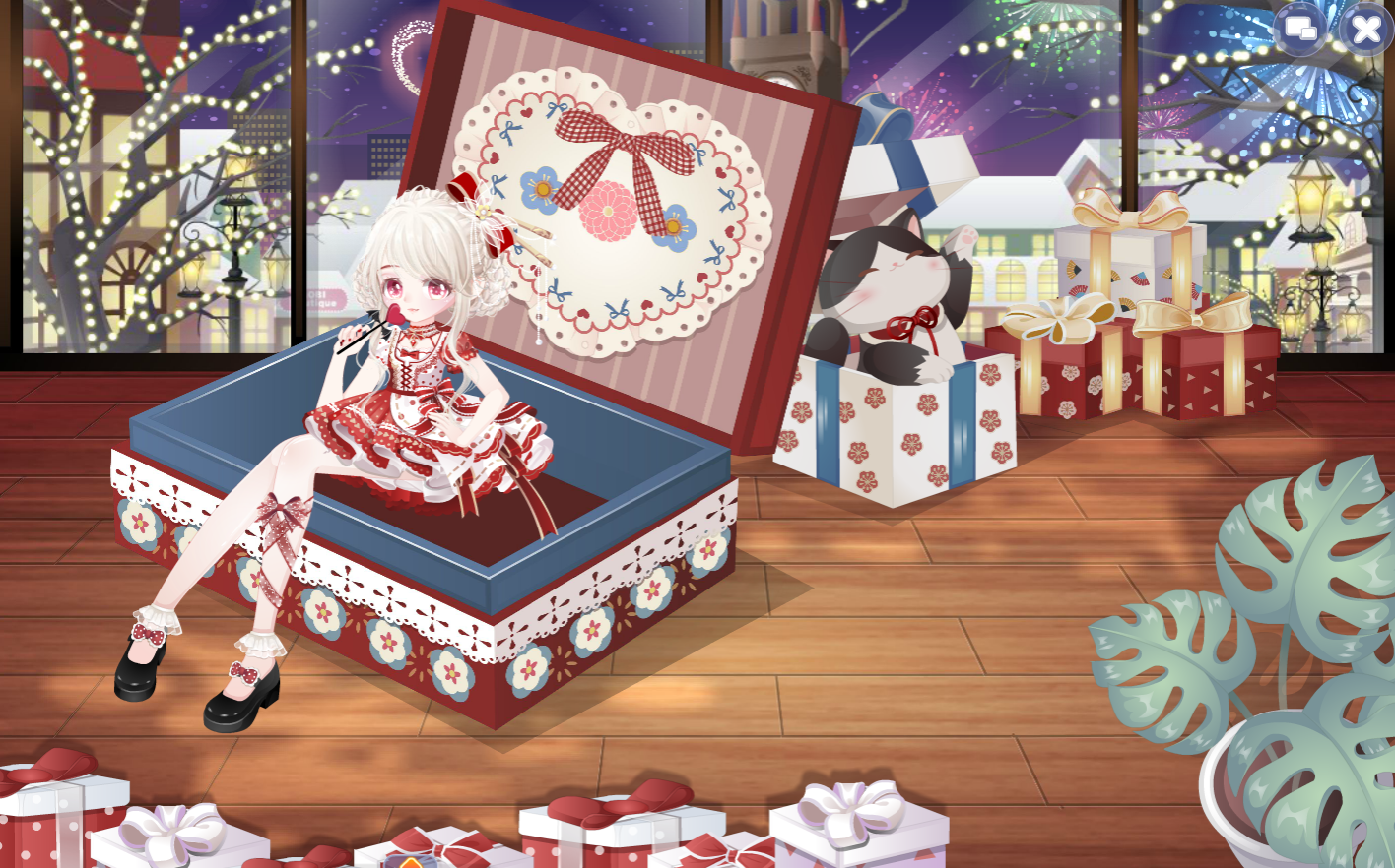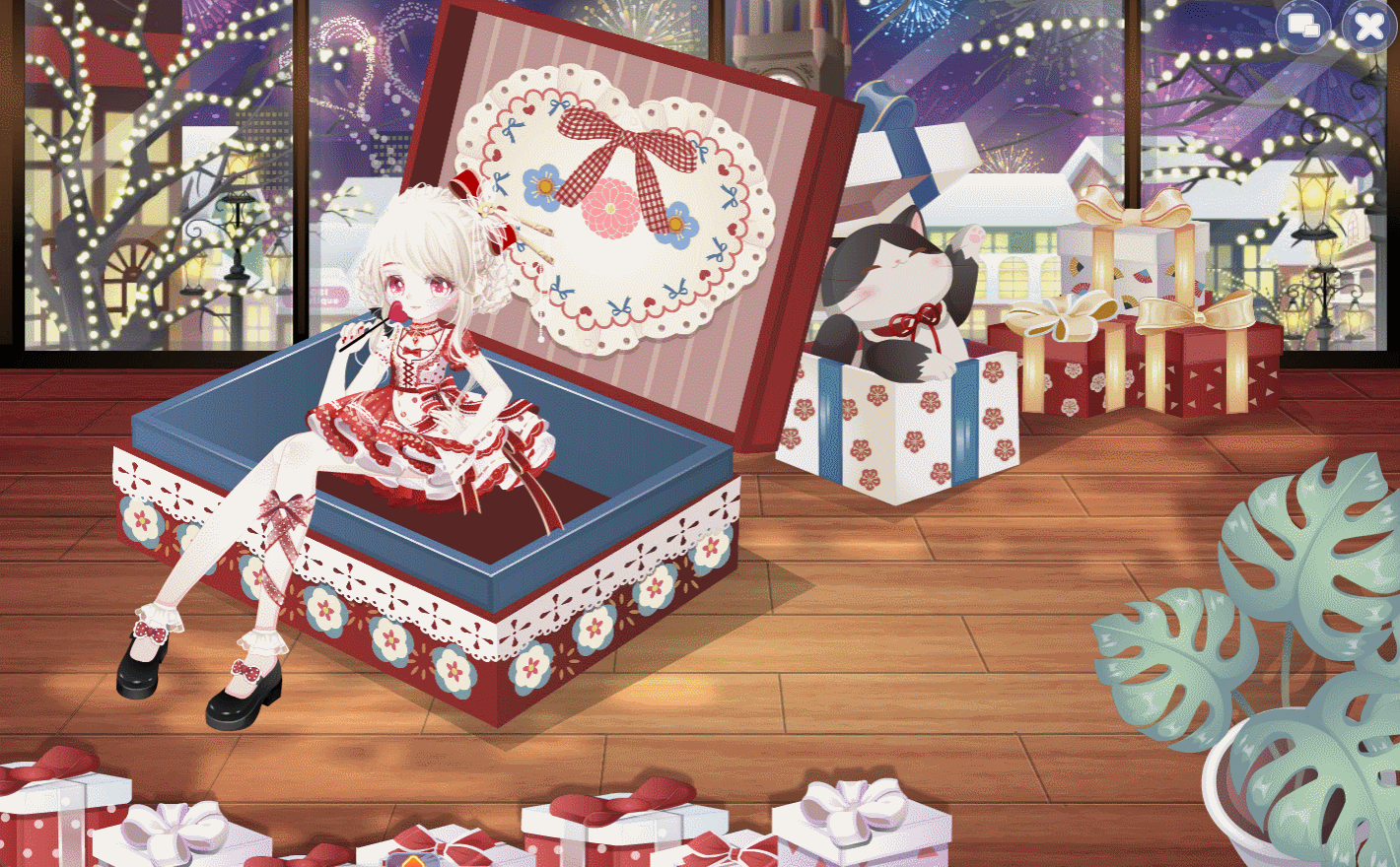 绒雪甜箱裙子、希望、围炉煮茶初雪妆、迷兔趣游信使箱、迷兔趣游右手姿、迷兔趣游兔耳帽、珂赛特少女长发型、