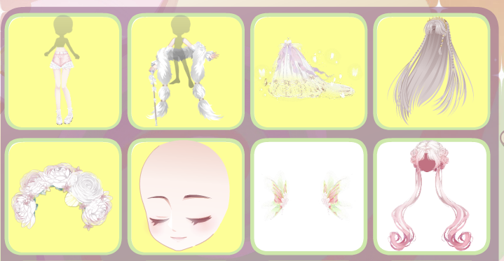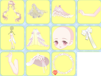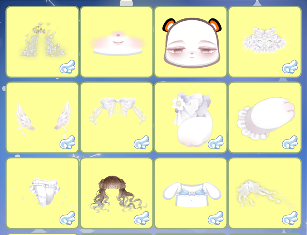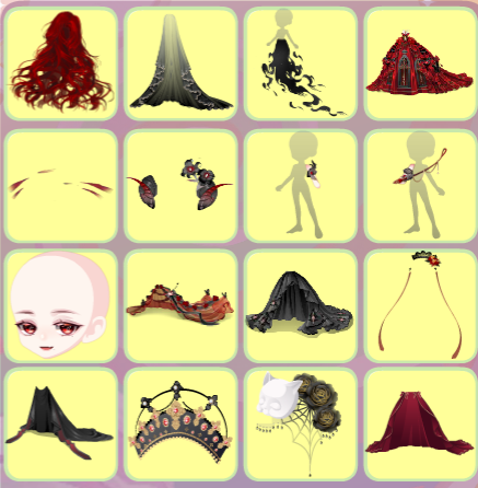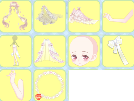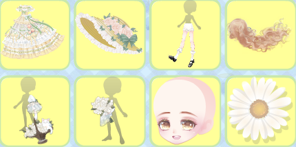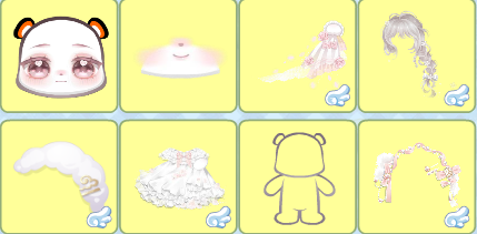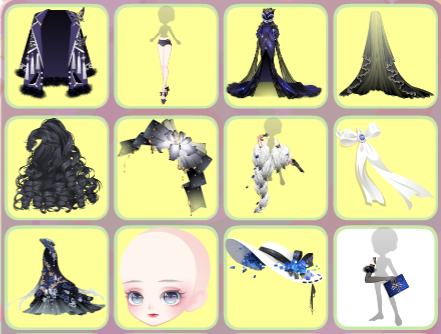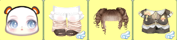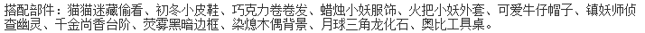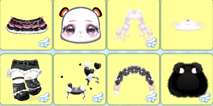 搭配部件:猫猫小吊带、猫猫小短裙、猫猫小耳钉、猫猫小发卡、嘉嘉辣辣腿、哼哼、粉粉生咖乖乖发、夏·若即若离、芝芝酪酪、飘叶幻野皮帽、宅宅的小失恋、猫猫魔法框、宅宅的星星边框、甜心电台电视机、绝望摇滚背景、绝望摇滚光影、绝望摇滚鼓乐师、绝望摇滚钢琴师
