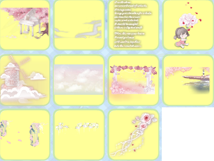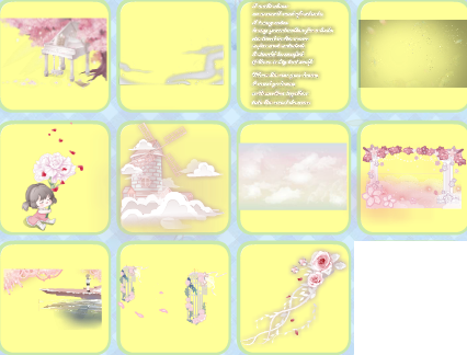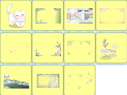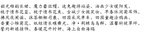 四月、挽月流云、狼少女诗句、少女梦境光晕、康乃馨献花宝宝、云端梦想大风车、云端回忆、樱庭流年樱花庭、鹿桥寄心爱心树、精灵呢喃鸟笼、梦境嫁纱玫瑰