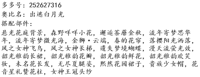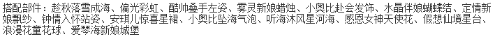 搭配部件:七七大王、温柔、唯美、雪芽破寒裙、守护星愿羽翼、守护星愿头饰、花径微风提裙袖、信使.小馒头手、浅语晨露、巧克力小妖头发、迎海玩水上衣、风.灵籁、云朵旋律曼莎、夏.煜煜生光、甜甜酣梦树荫下、幻星湖畔法阵、水晶兰精灵、繁星夺目领域、拇指姑娘阳光、乖喵深邃星空景、巨蟹熊熊云海、傲梅风骨月落、软猫猫彩虹雾