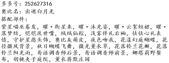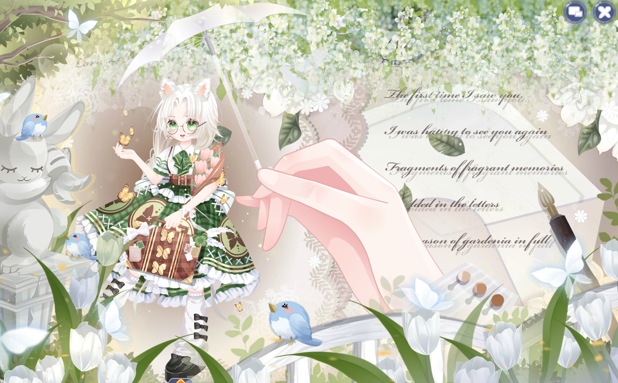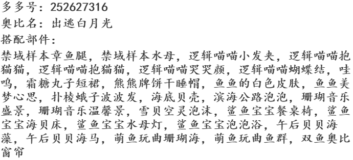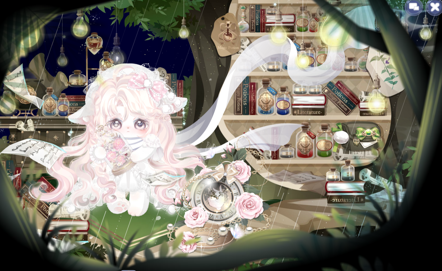 搭配部件:逻辑喵喵蝴蝶结,曜•绒绒体,曜•沐光姿,曜•流光裙,曜•落梦结,曜•曦光卷发,恺恺厌世嘴,雪芽映瞳妆,绒意双辫帽子,蔷薇心事手持,萤溪灵语小鹿耳,玫瑰王子围巾,阿芙害羞腮红,蔷时雅韵,夏•远风回音,待君归雨泪,无常世界树影,时之童谣灯泡,云端之下树荫,猫の梦境碎裂,魔法药剂实验室,暖冬寒夜漫漫景