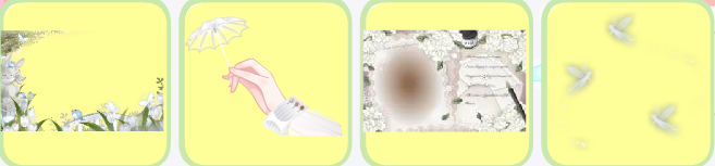 暹罗猫猫小耳朵/枫歌秋笺镜框/田园采风妆/汪汪·逃出来/春与远诗/樱花艺姬发辫/春日宴前景/朝颜听雨撑伞/栀子情书背景/月华仙客共舞/春色花帘