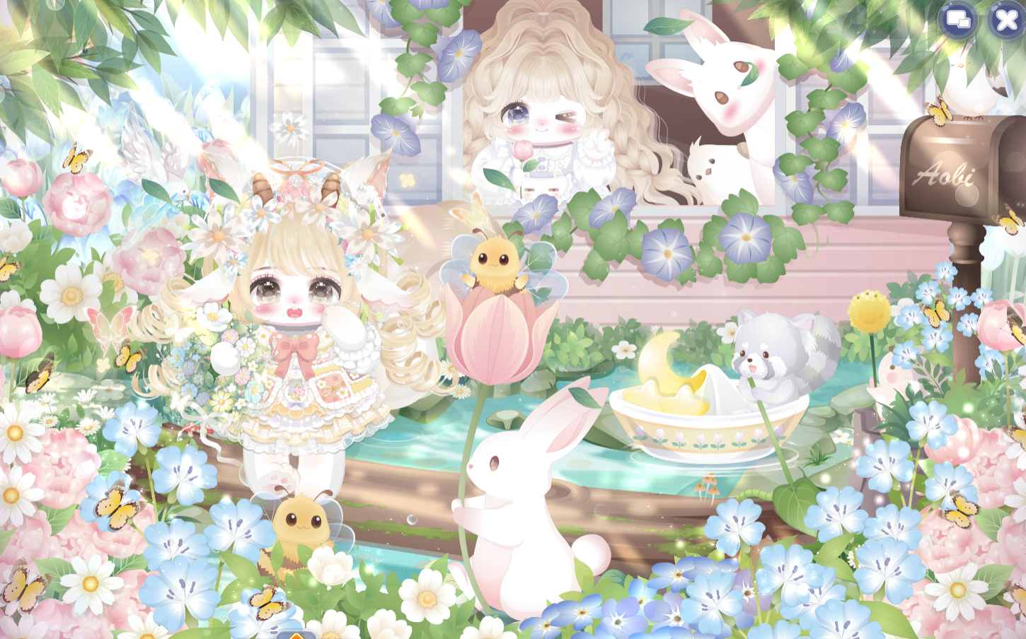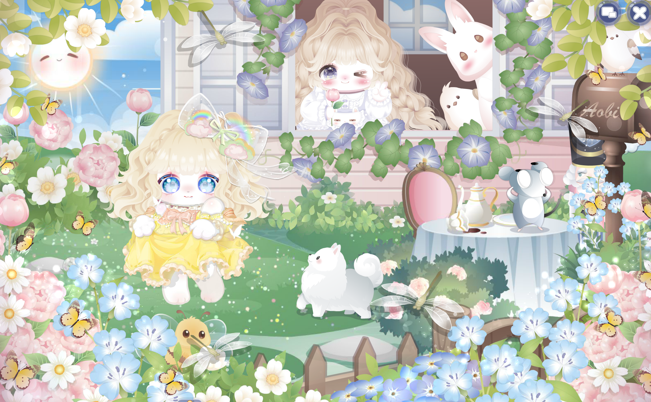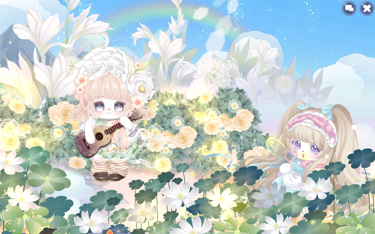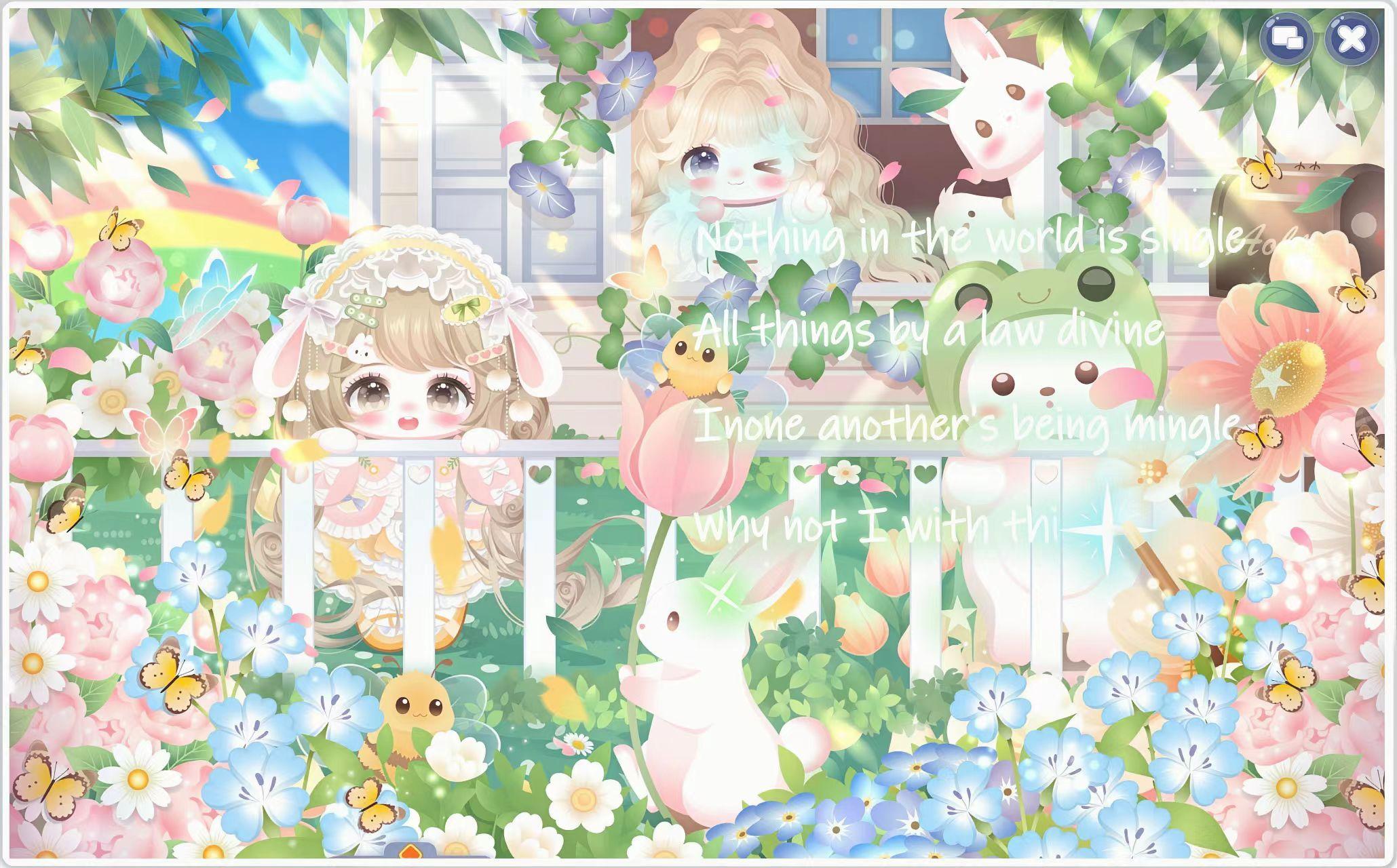 搭配部件:蝶·语、呆萌、随风来花裙、初冬小皮鞋、春景熙然花朵帽、紫瑞萌兔发型、盛夏光屿协奏、风拂春芽花初盛、花漾幻庭背景、花漾幻庭小伙伴、油菜花少女花瓣、萌萌魔熊花云、花音星礼赞花圃、万物生之小白花