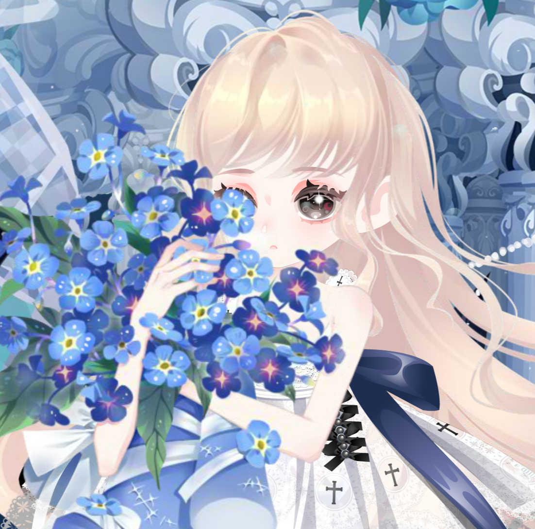 你将幽蓝花束按在唇间,