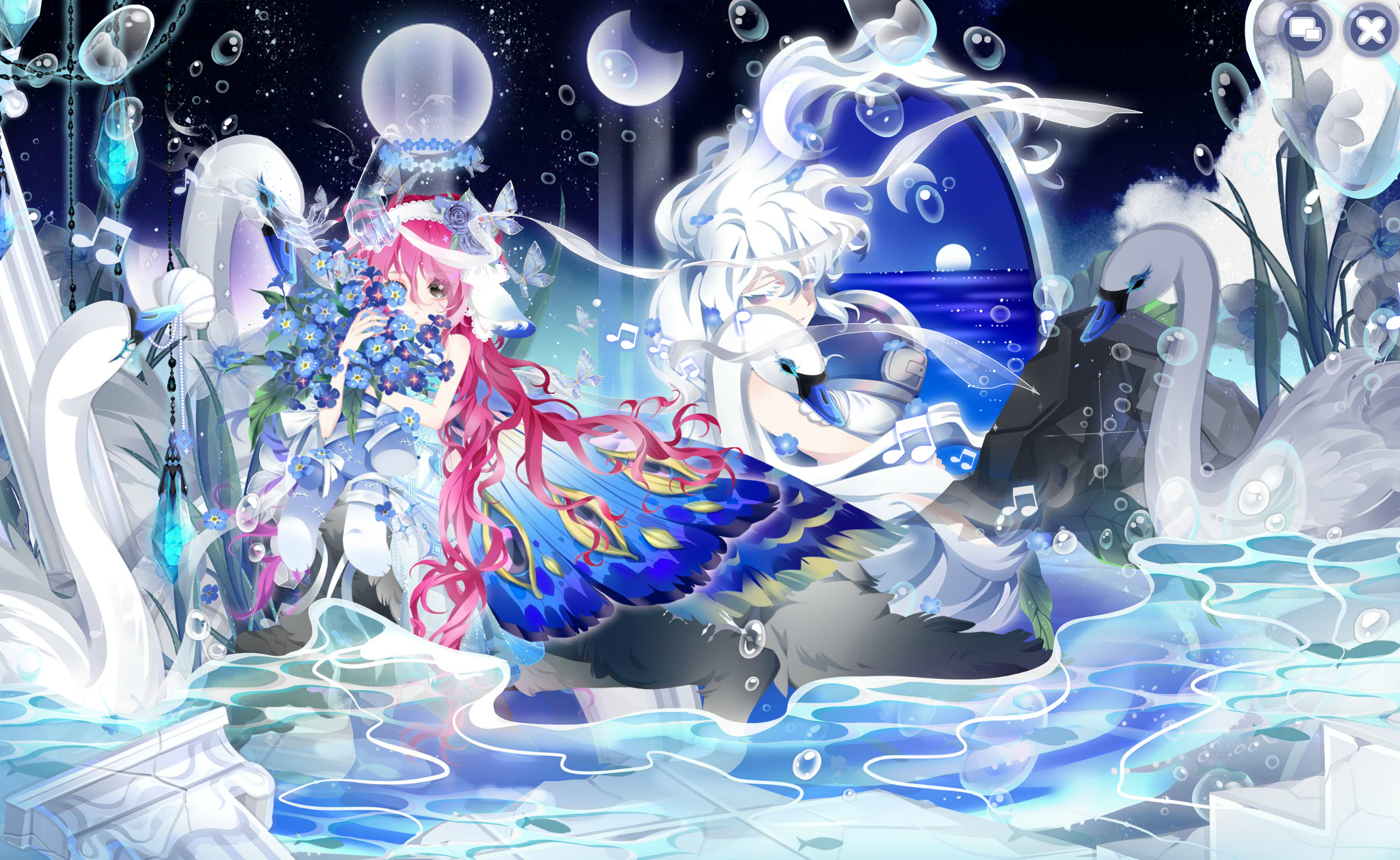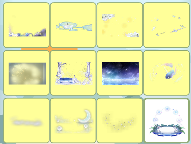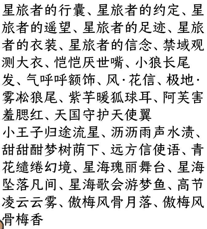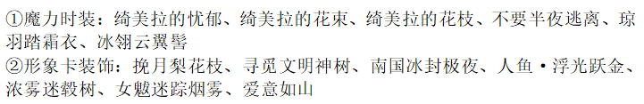 月梦蔷薇亭、花园漫步背饰、风信子音乐飞扬、爱之羽夜景