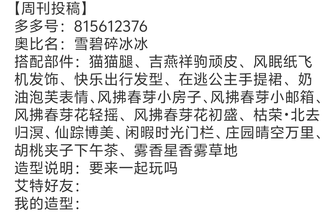 2.本次搭配需要围绕 “风拂春芽装扮赛” 这个主题,无论是魔力服饰还是熊装都是可以的。