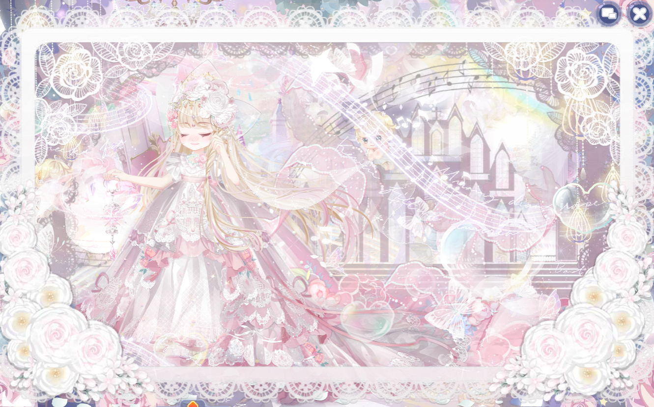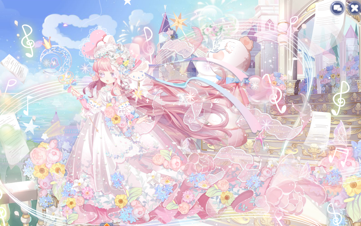 搭配部件:花·悦、光之美少女站姿、光之美少女裙纱、光之美少女短裙、光之美少女颈饰、光之美少女头饰、乐·明日之星、乐·圣音法杖、净梦舞彩蝶双辫、时光精灵微笑妆、花·廊、光之美少女光效、契约牢笼白鸽、魔法夏铃光效、出道夜蝴蝶蹁跹、乐·契约魔法、乐·小熊指挥、未来歌姬舞台、精灵呢喃背景