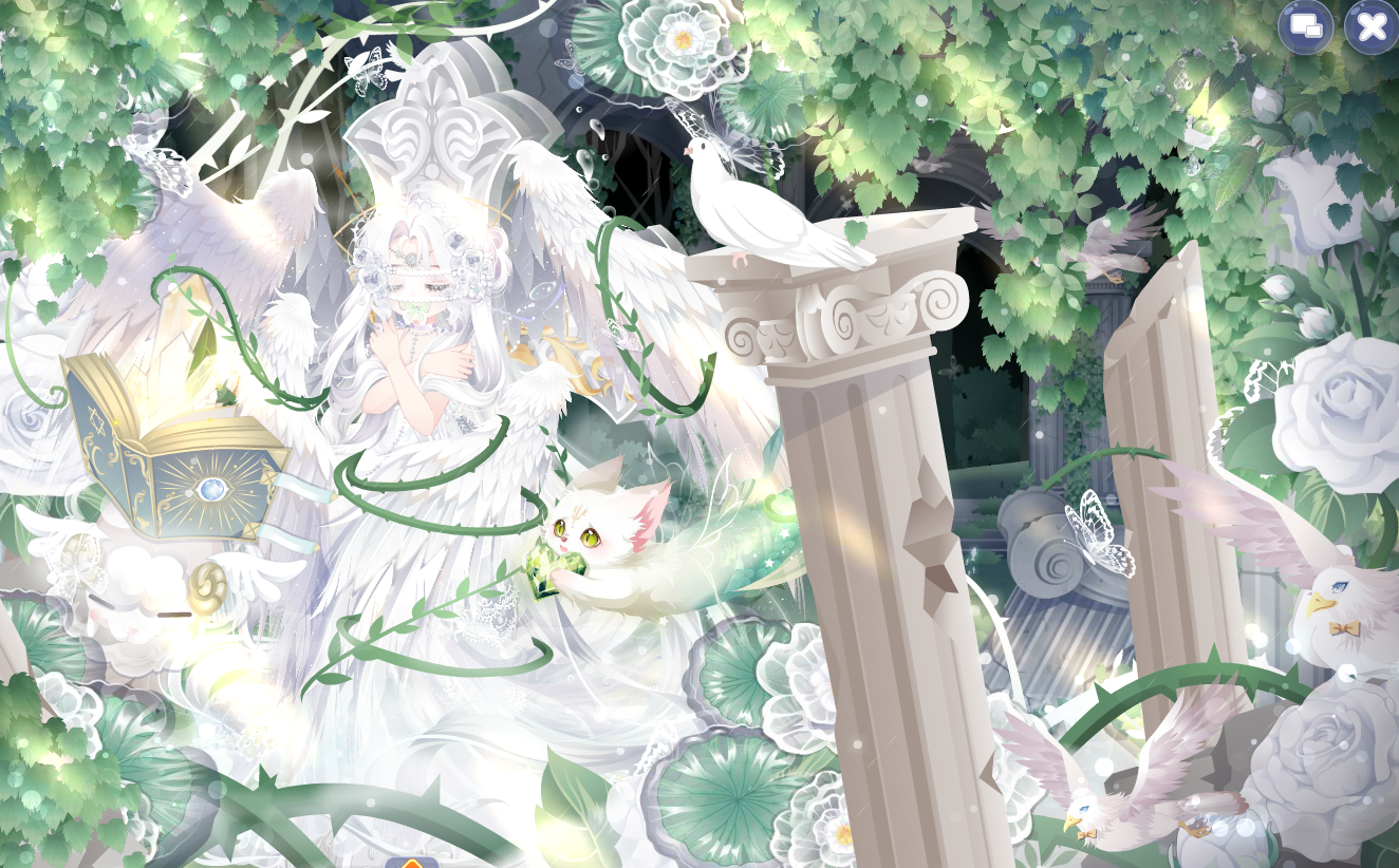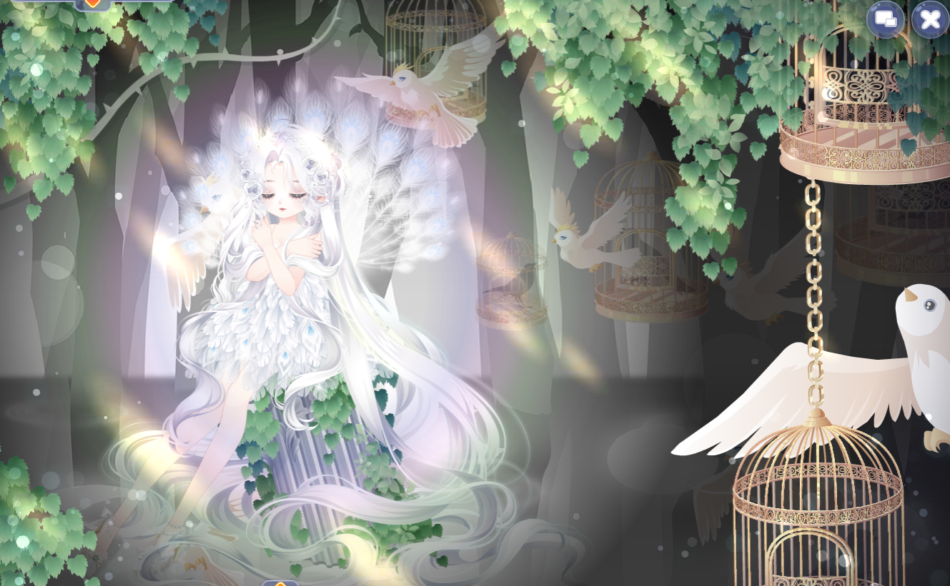 搭配部件:祷歌与泪残柱、祷歌与泪发型、祷歌与泪妆、祷歌与泪发饰、留声萦年坐姿、孔雀之羽短裙、白孔雀之翼、