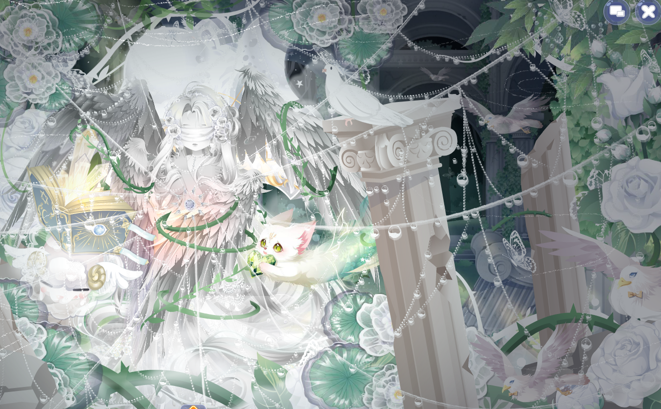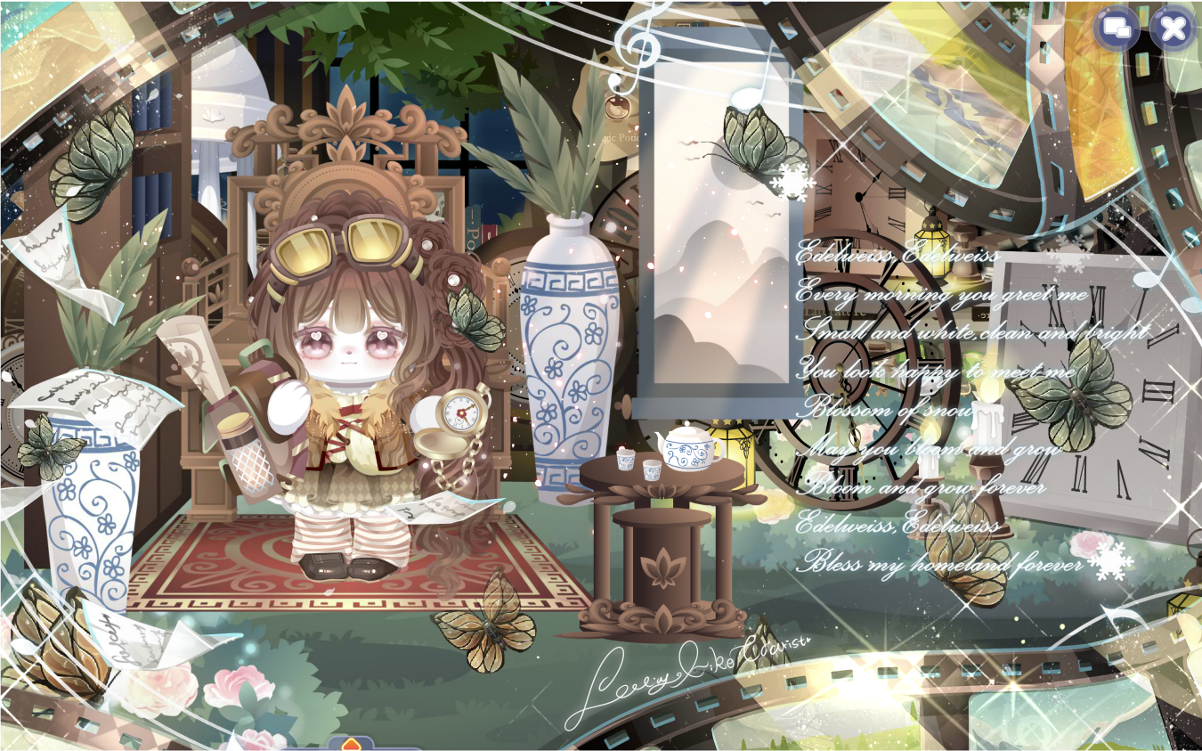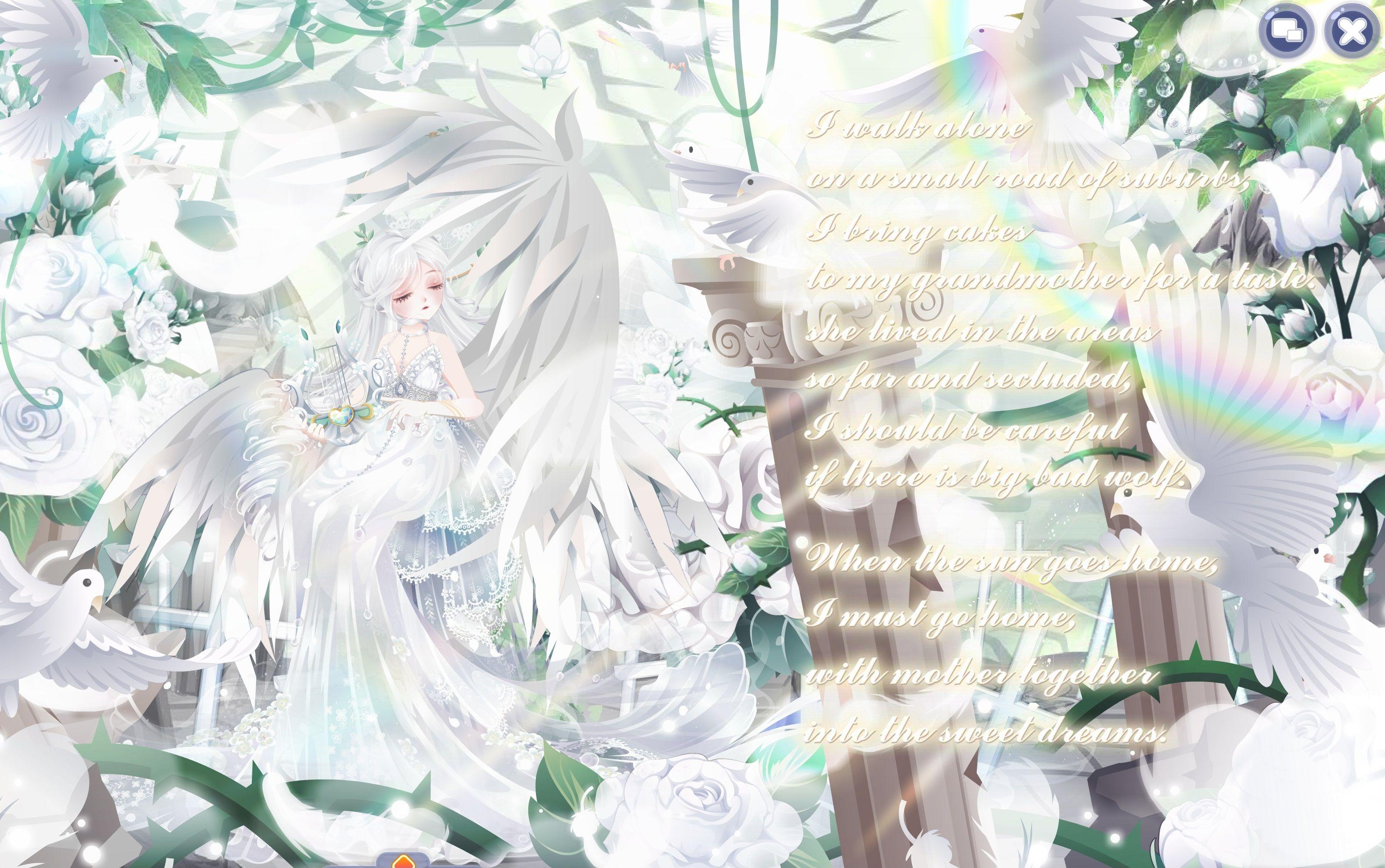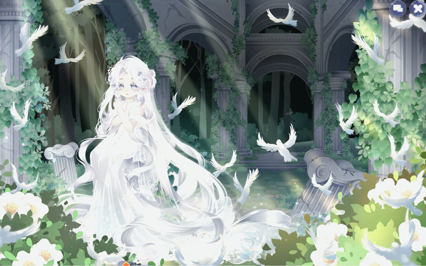 搭配部件:祷歌与泪裙、祷歌与泪守护、夜冕绘梦梦妆、狐灵幻羽长发、流年寄梦泪光闪、油画少女秋千、春的坐姿、拂风梦满枝、静待春光光效、明月松间照