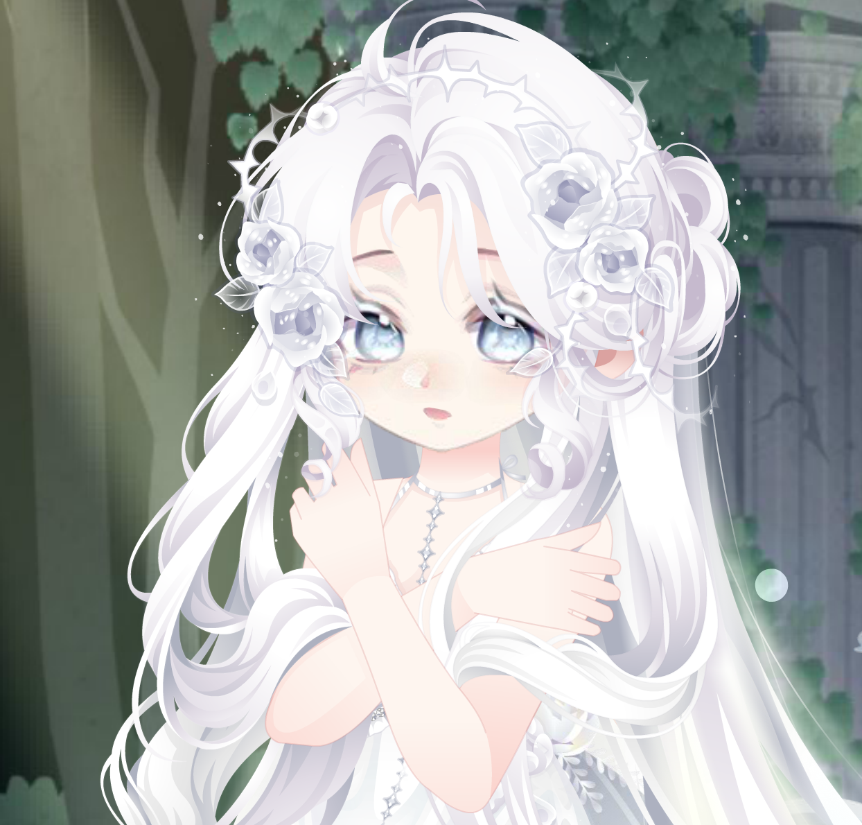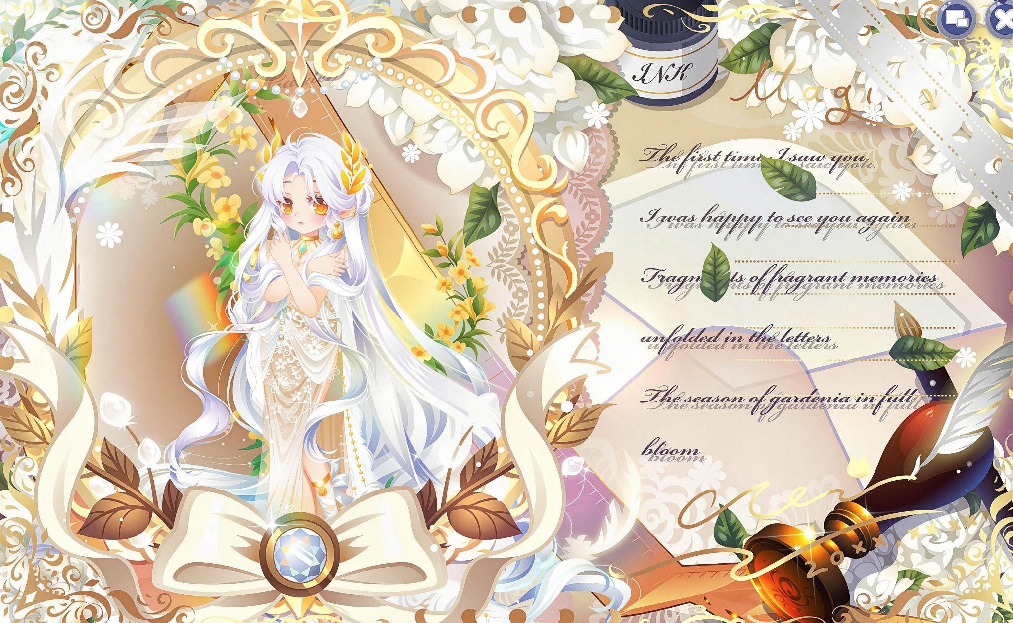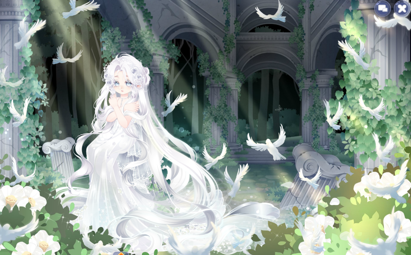 搭配部件:祷歌与泪裙、祷歌与泪守护、夜冕绘梦梦妆、狐灵幻羽长发、流年寄梦泪光闪、油画少女秋千、春的坐姿、拂风梦满枝、静待春光光效、明月松间照